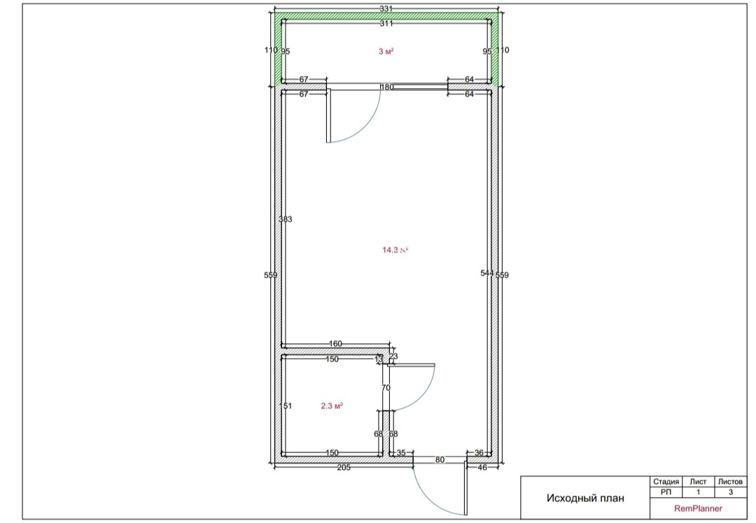 Общая площадь 19.8 м2