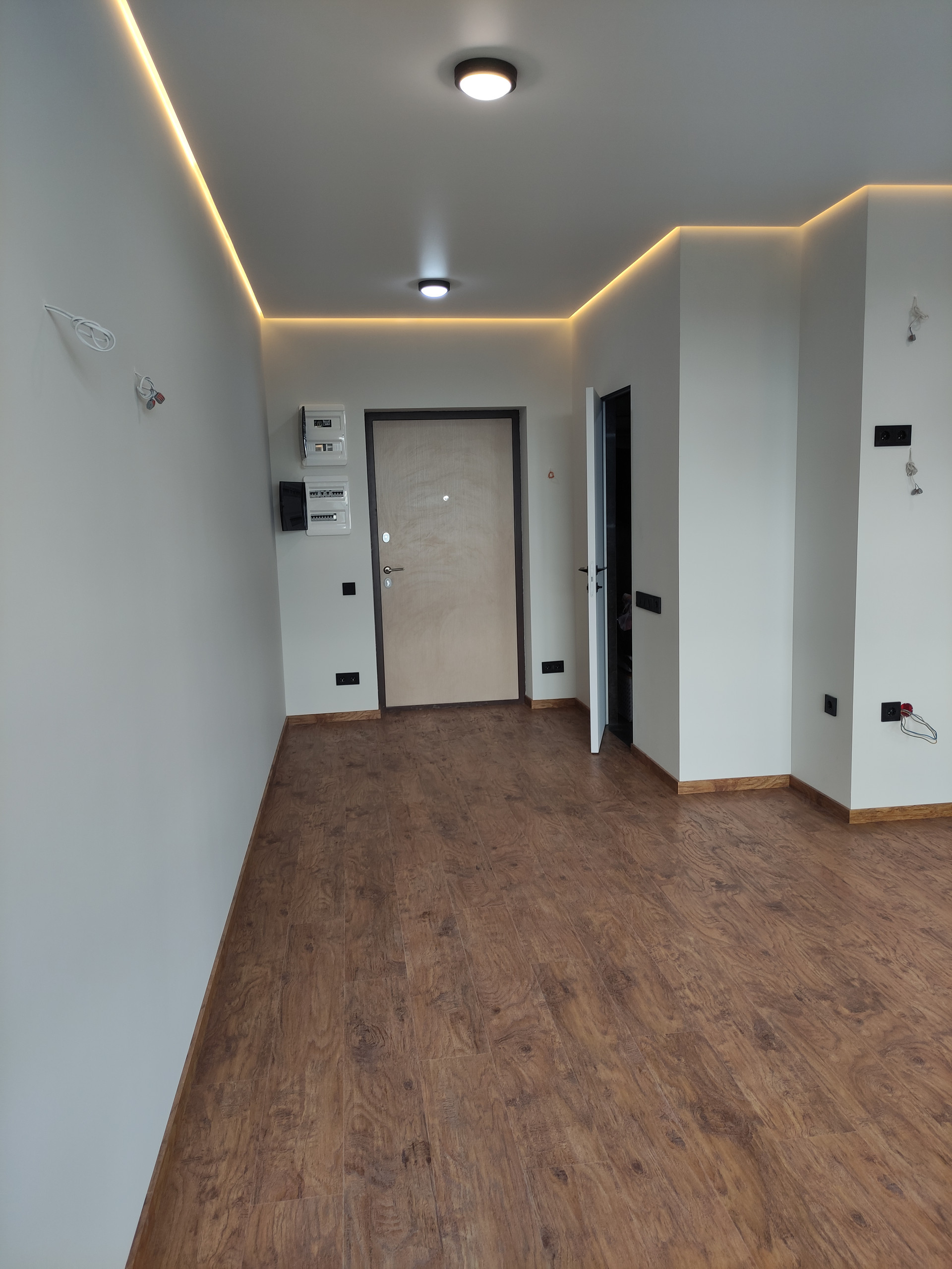 Штукатурка и стяжка идеально ровные, всё делалось по лазерному уровню.