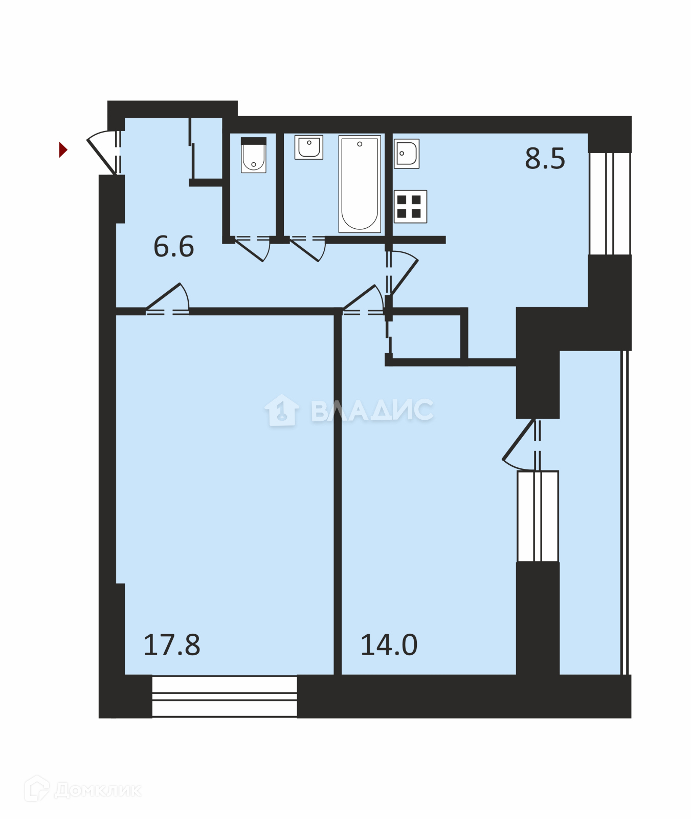 Общая площадь 51.6 м2
