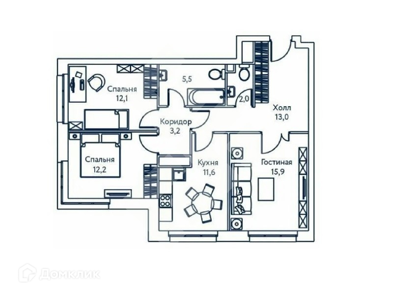 - гостиная - 15,9 м.