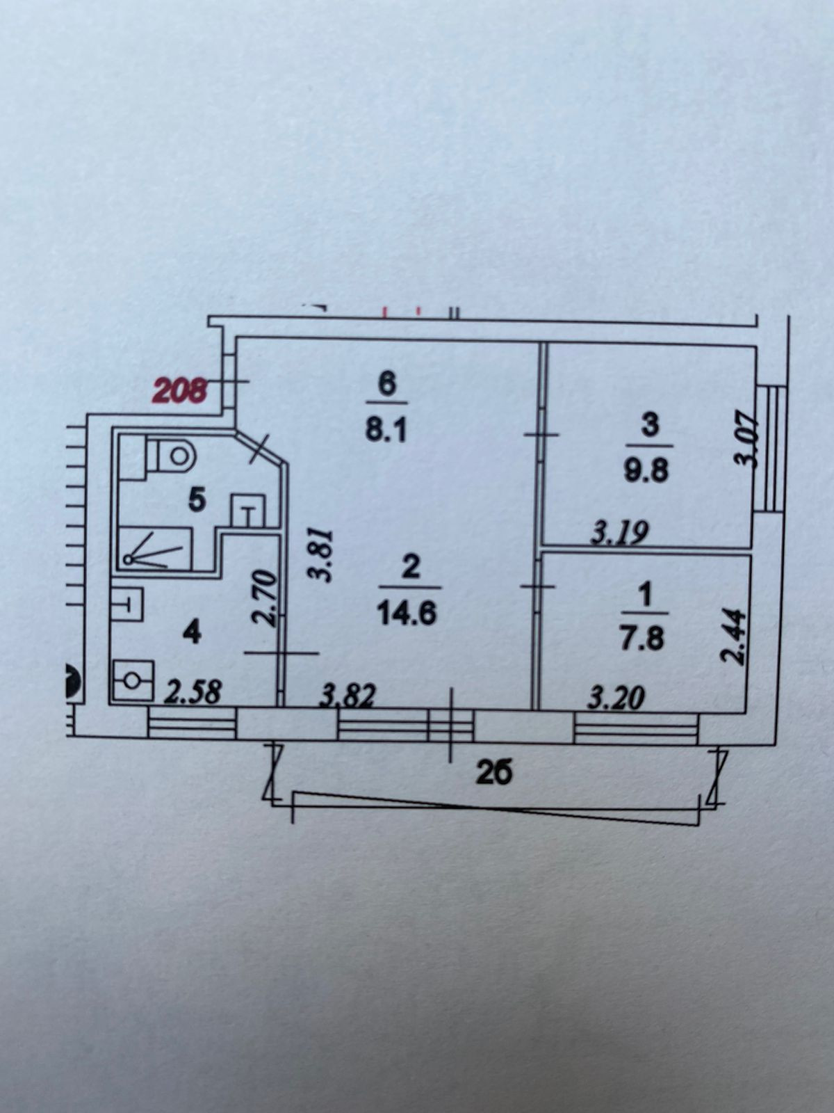 Общая площадь 52 м2