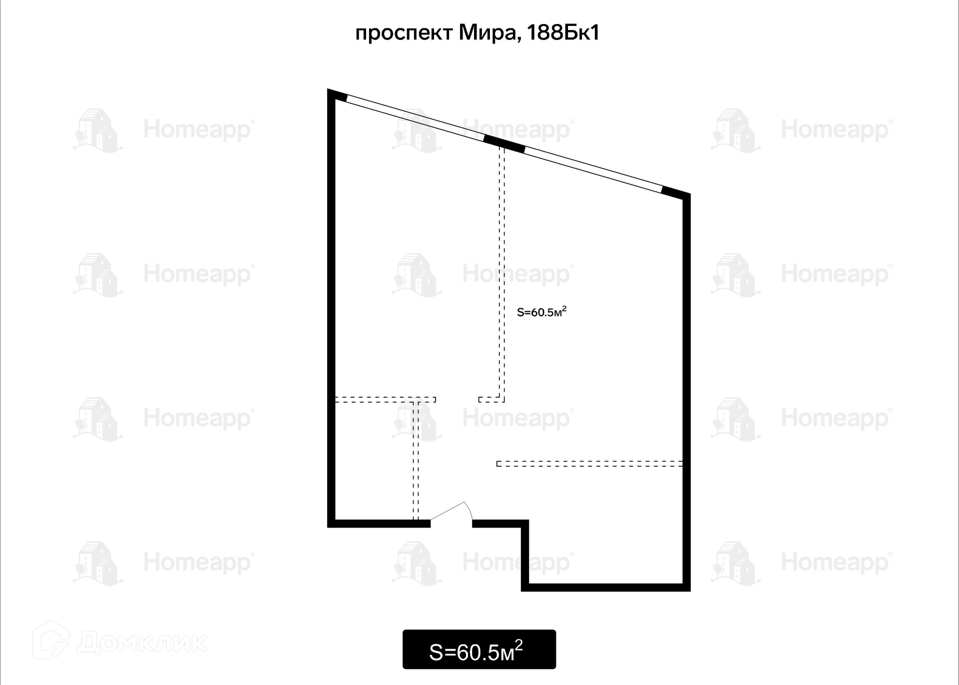 Общая площадь 60.5 м2