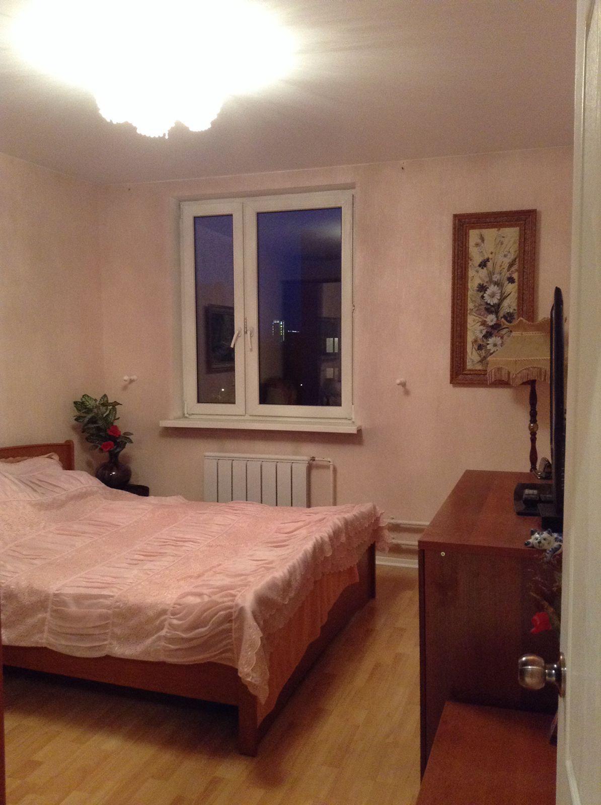 В другой комнате: двуспальная кровать, большой гардероб, комод.