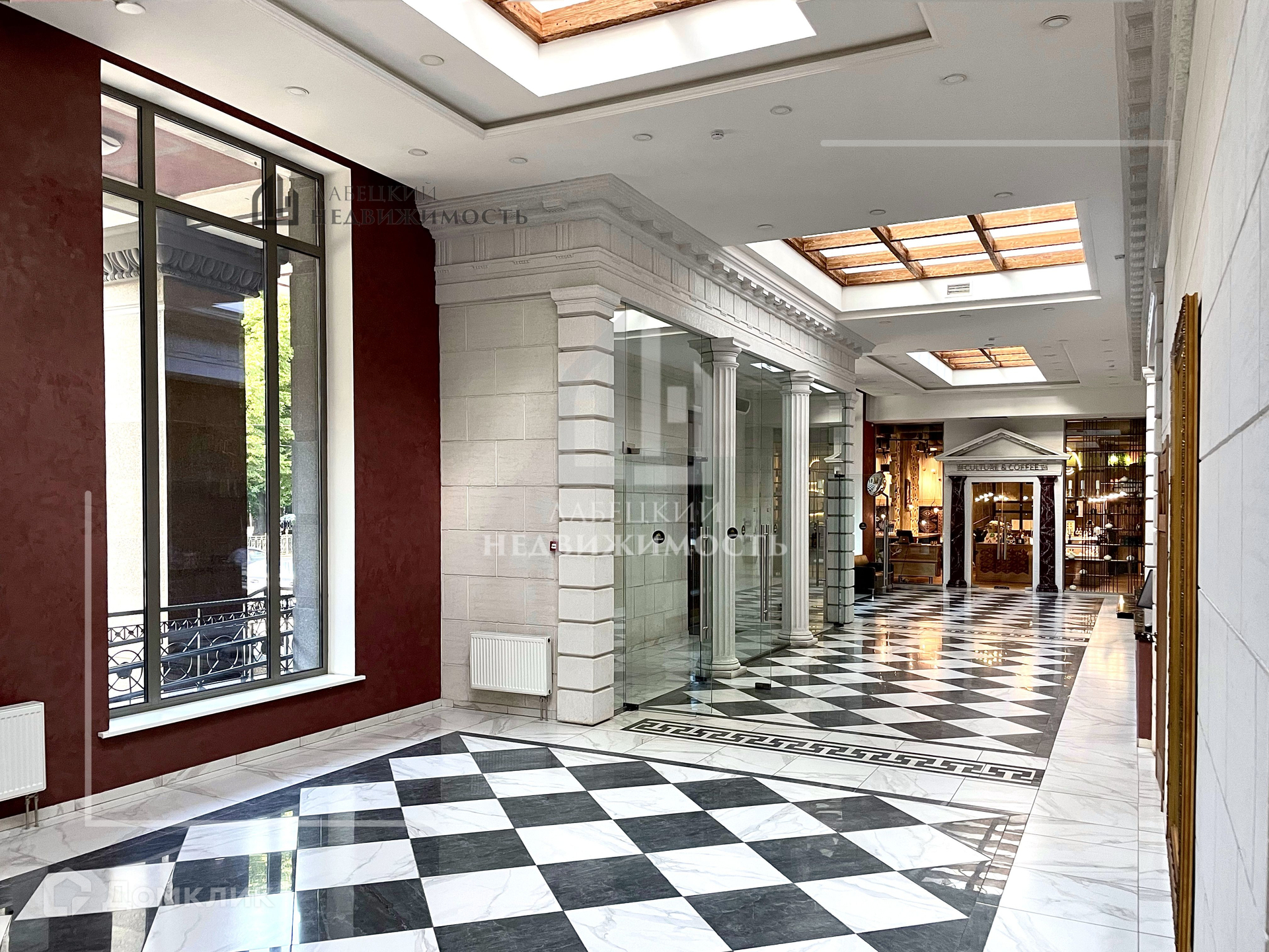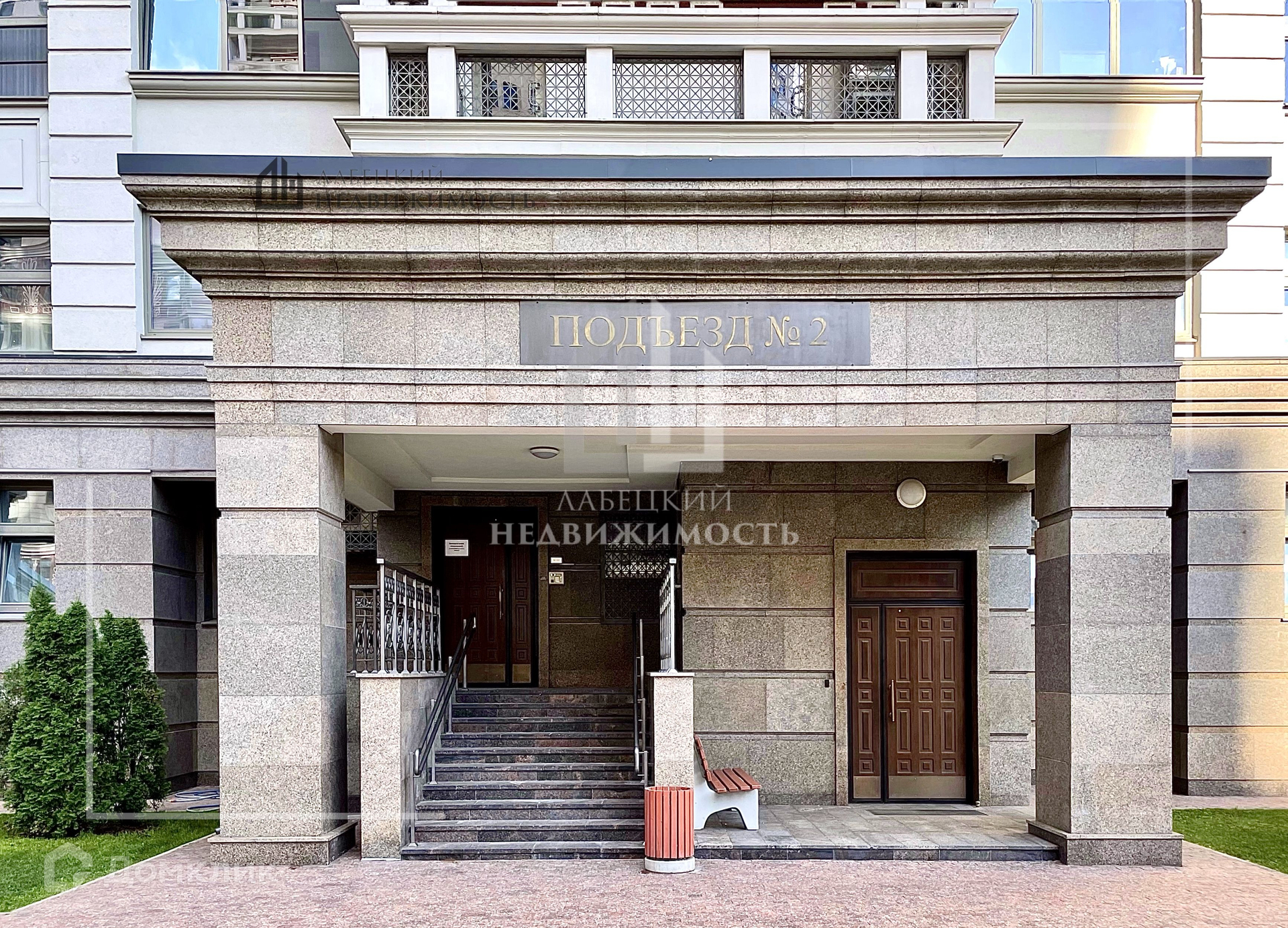 Дом полностью из красного керамического кирпича, был сдан в 2017 году. Отделка фасадов выполнена из гранита в светлых тонах оттенков оливы и льна, с античными орнаментами.