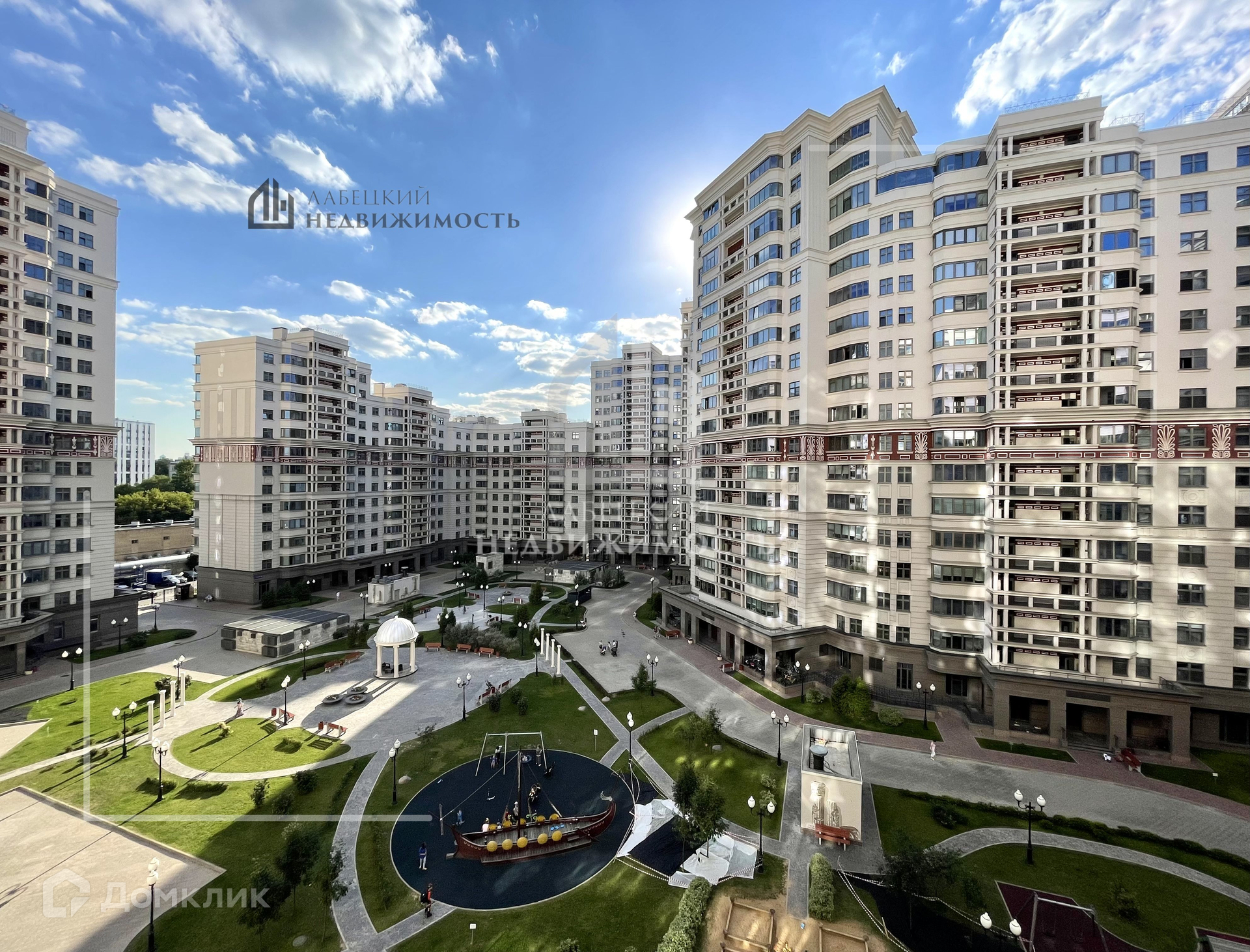 Территория жилого комплекса составляет 4.7 Га, из которых 25% ‘зелёное покрытие’ - это Ваш островок безопасности, где спокойно и комфортно отдыхают взрослые и дети. Внутри двора детские площадки, стилизованные под археологические раскопки и корабль аргонавтов. Обустроены велосипедные и прогулочные дорожки, спортивные площадки, лежаки, разбиты газоны и цветники, установлены скульптуры, в центре экспозиции - беседка-ротонда.