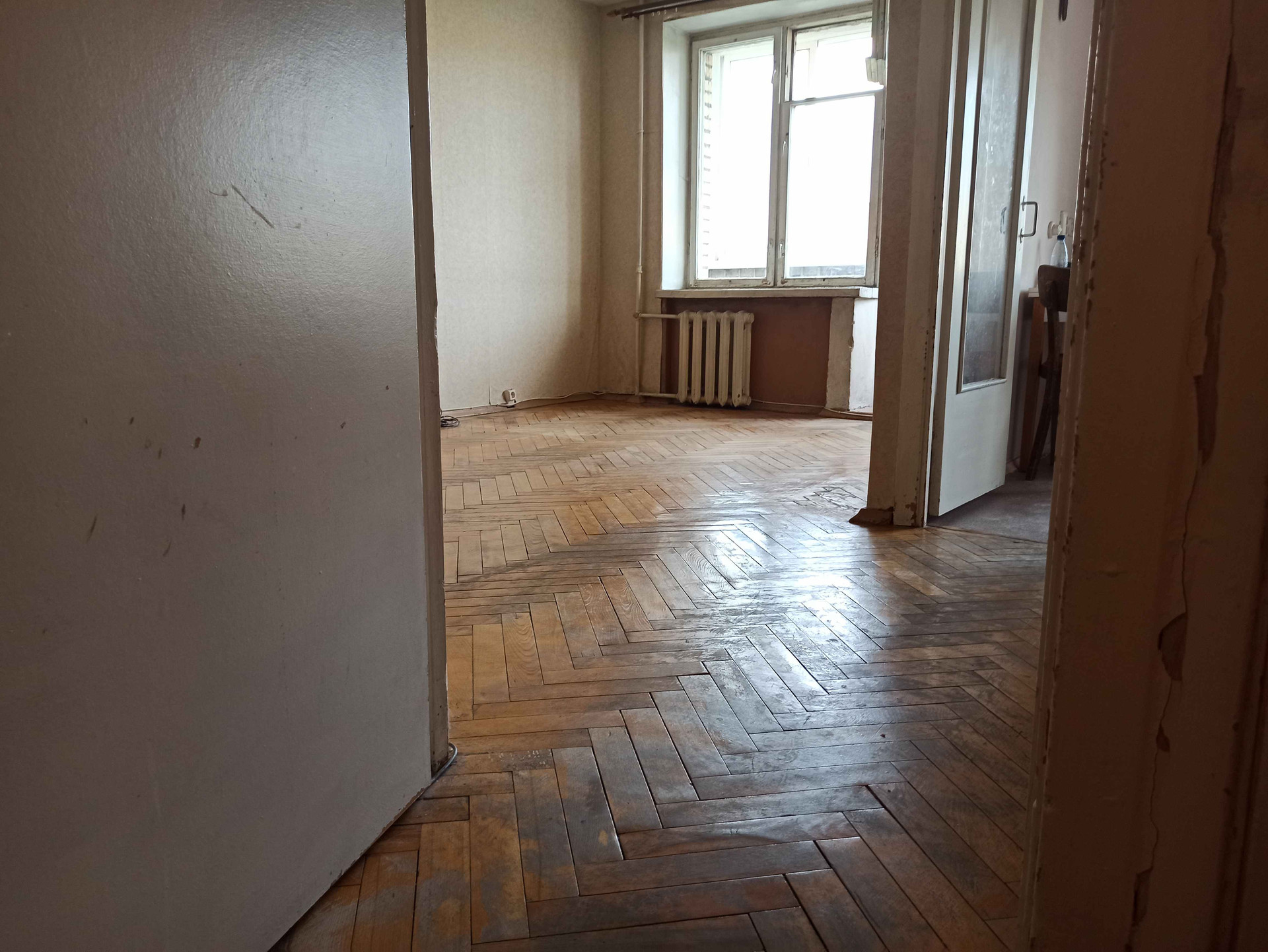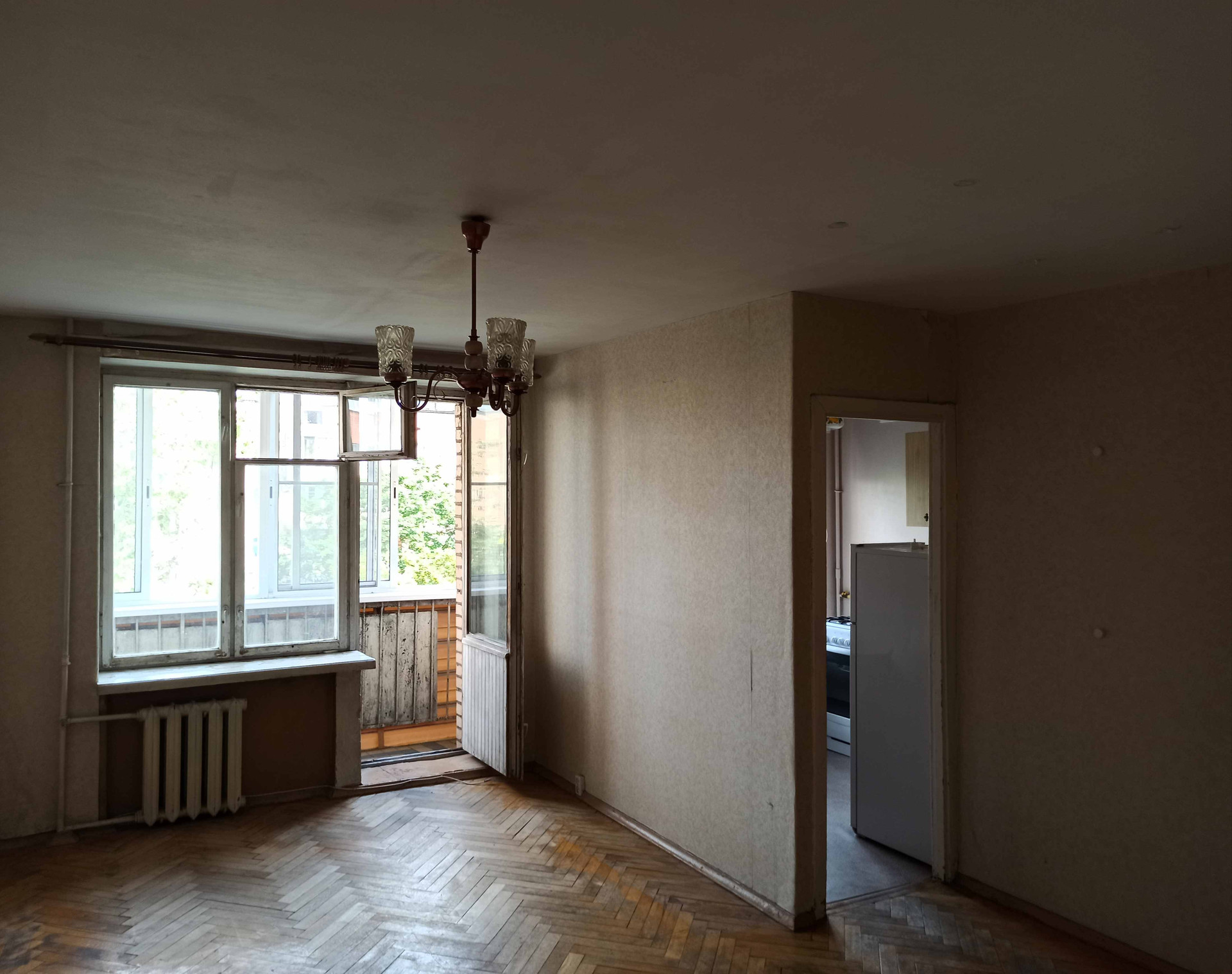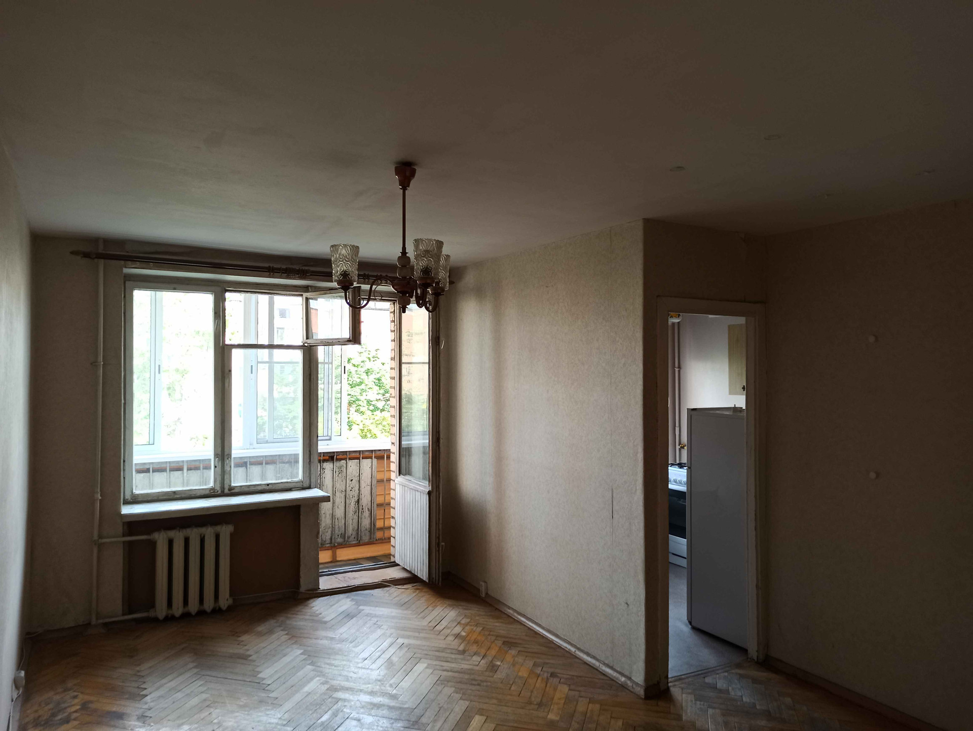 Уютная однушка в кирпичном доме, общая площадь 30,3 кв. м, застеклённый балкон, требуется ремонт. Окна деревянные, на балконе - раздвижные стеклопакеты, чугунные радиаторы, довольно крепкий паркет, централизованный газ, счётчики на воду. Квартира тёплая, светлая и солнечная, окна во двор без машин и проезда, тишина и воздух.