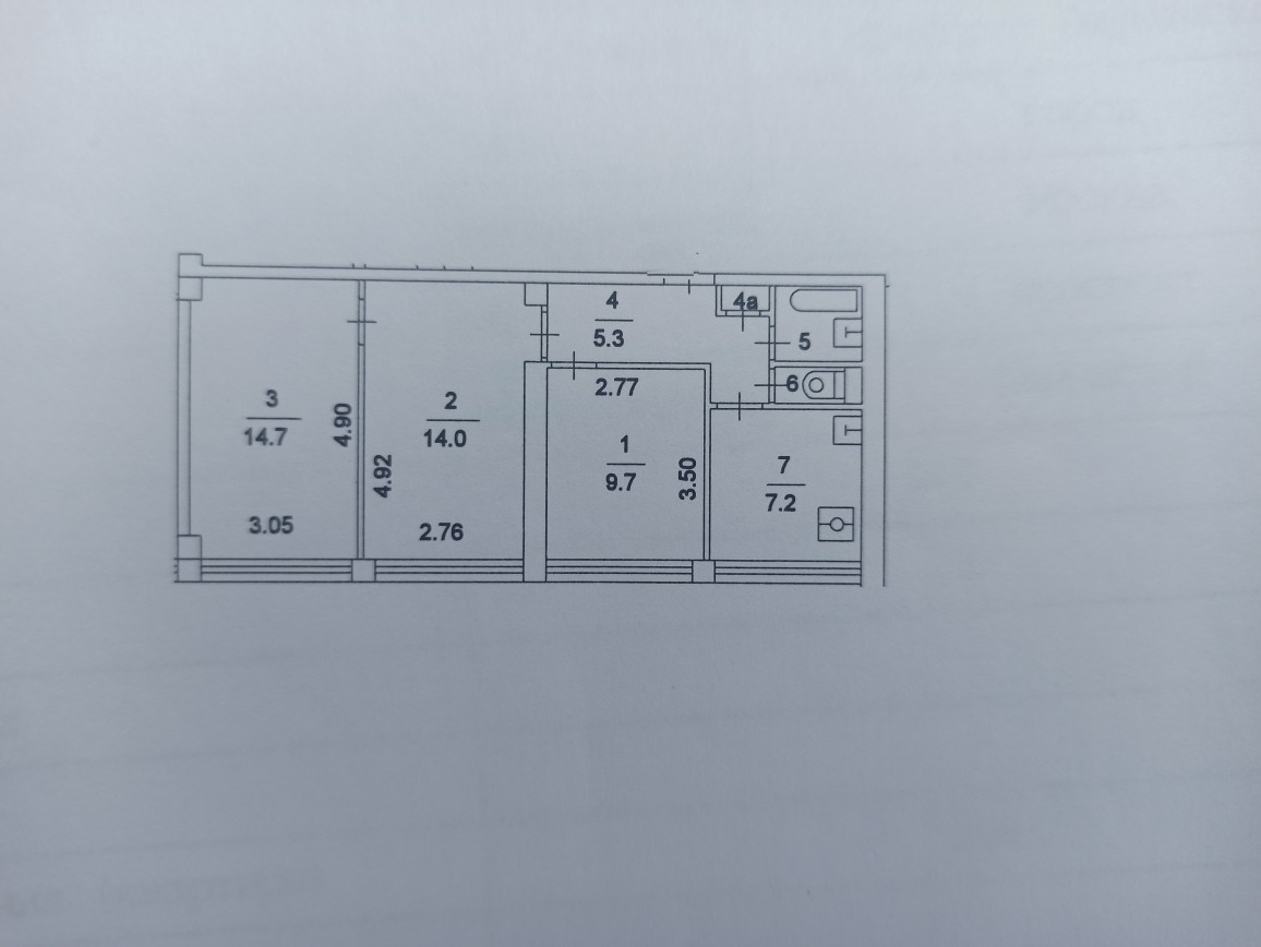 Общая площадь 54.4 м2