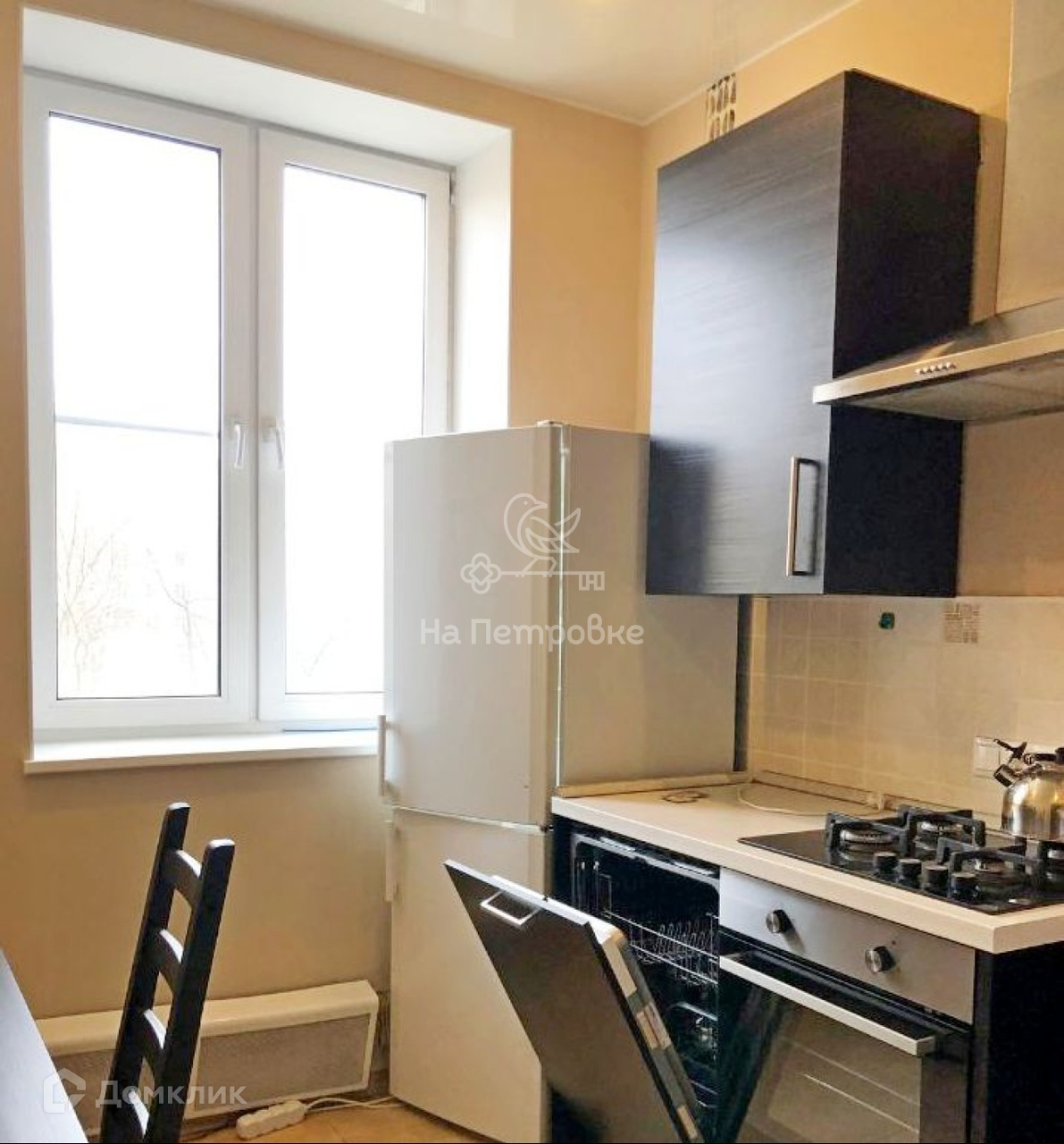 Натяжные потолки, обои под покраску, паркет в комнатах, мебель и техника Икеа.