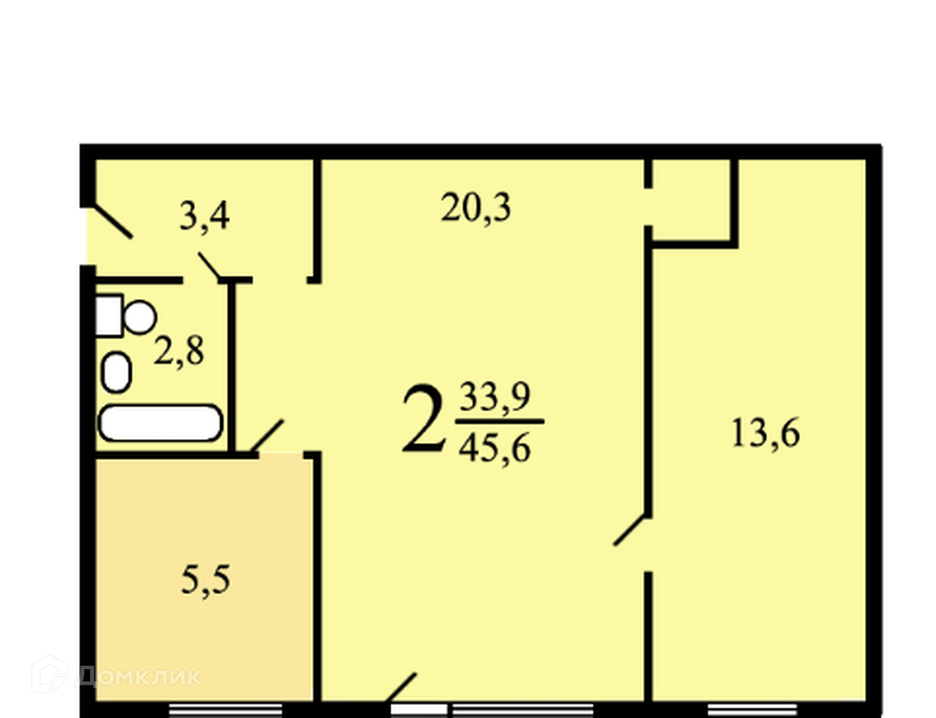 Жилая площадь 33.9 м2