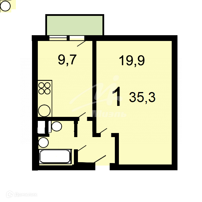Общая площадь 35.3 м2