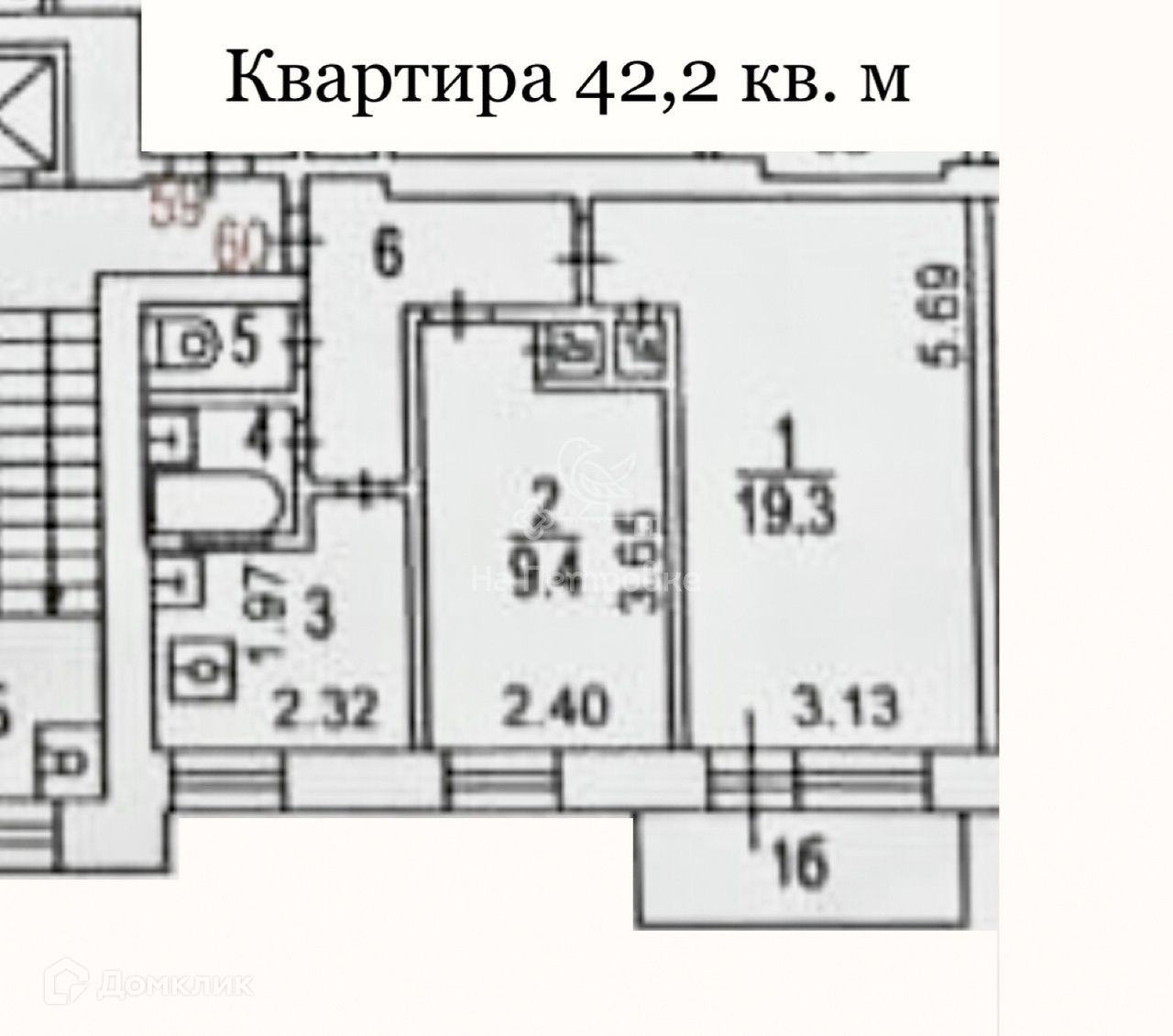 Общая площадь 42.2 м2