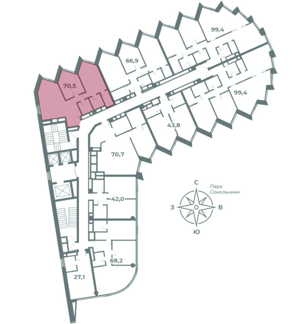 2-комнатная квартира, 70.5 м2, этаж 18 / 21, на продажу в Москве, улица Сокольнический Вал, 37