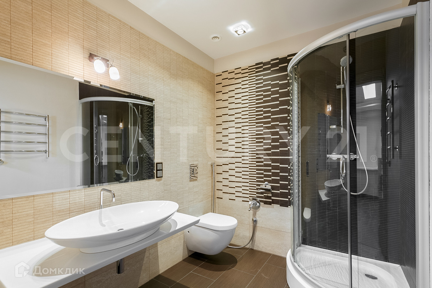 Пространство оформлено с применением натуральных материалов, установлена полностью оборудованная кухня, бытовая техника, оборудование санузлов премиальными брендами Германии и Италии.