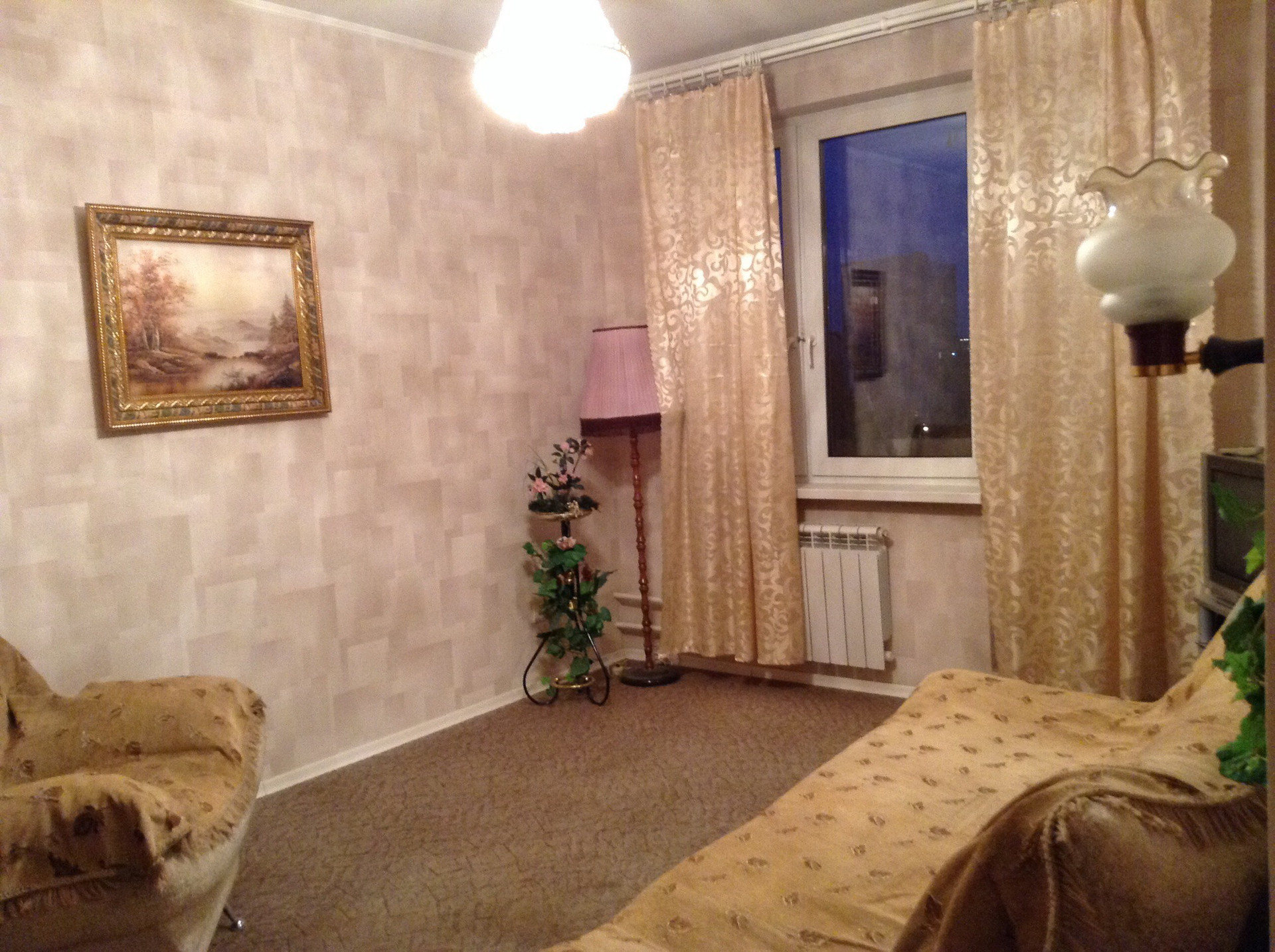 В другой комнате: двуспальная кровать, большой гардероб, комод.