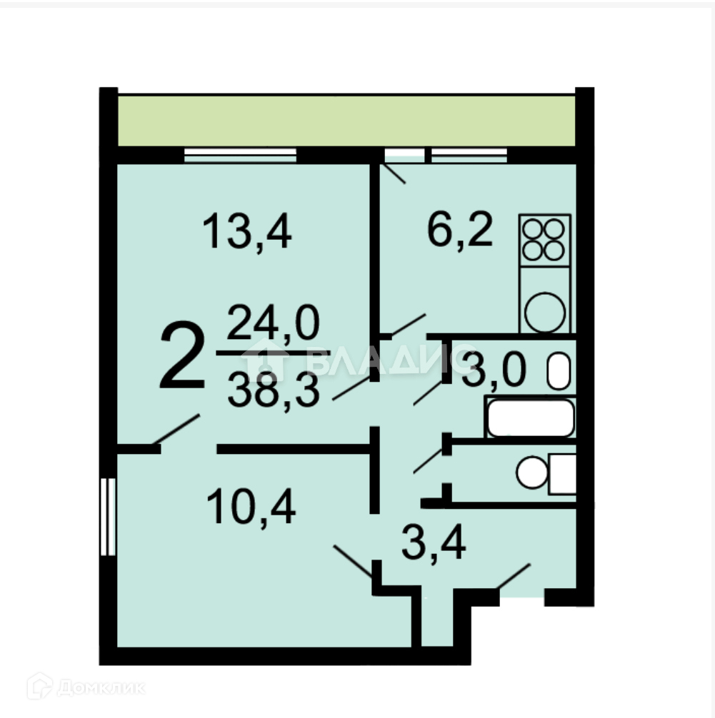 Общая площадь 38.3 м2