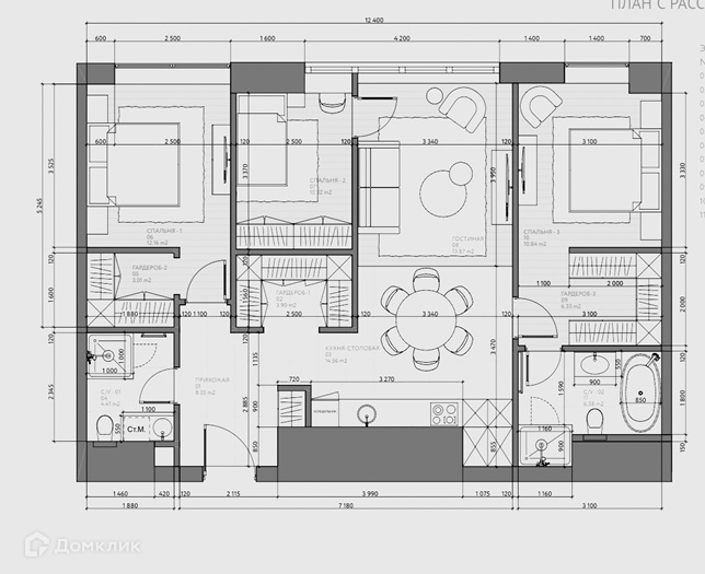 id 4494 Видовой вариант с видом на Москва-Сити и в сторону центра (окна выходят на Юго-Восток). Кухня-гостиная, 3 спальни, 2 санузла, 3 гардеробные. Продается полностью укомплектованный мебелью и техникой.