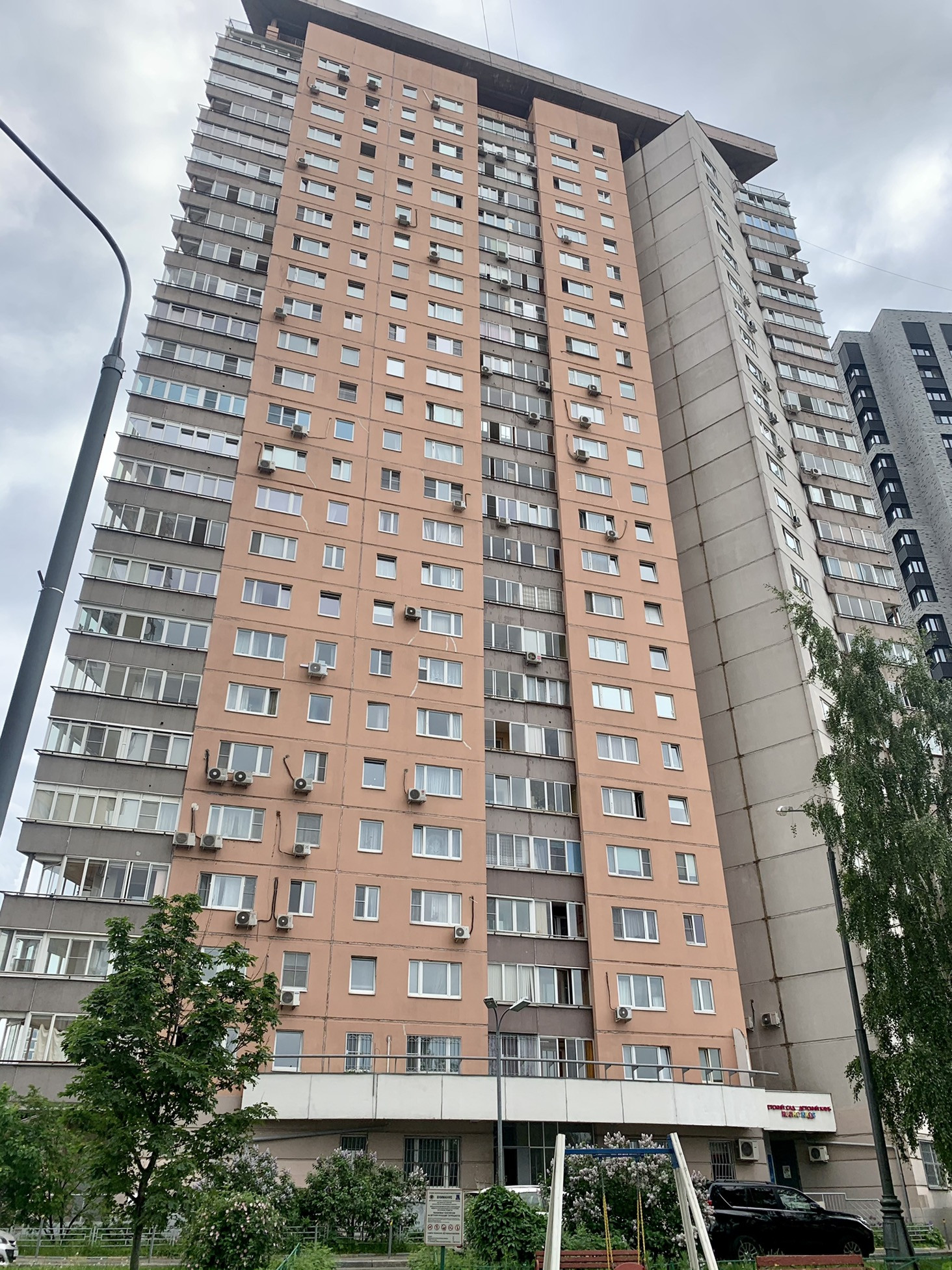 - от основных дорог закрыт соседними домами, но имеет удобные въезды и полноценные парковочные зоны на придомовой территории, въезд во двор под шлагбаум;