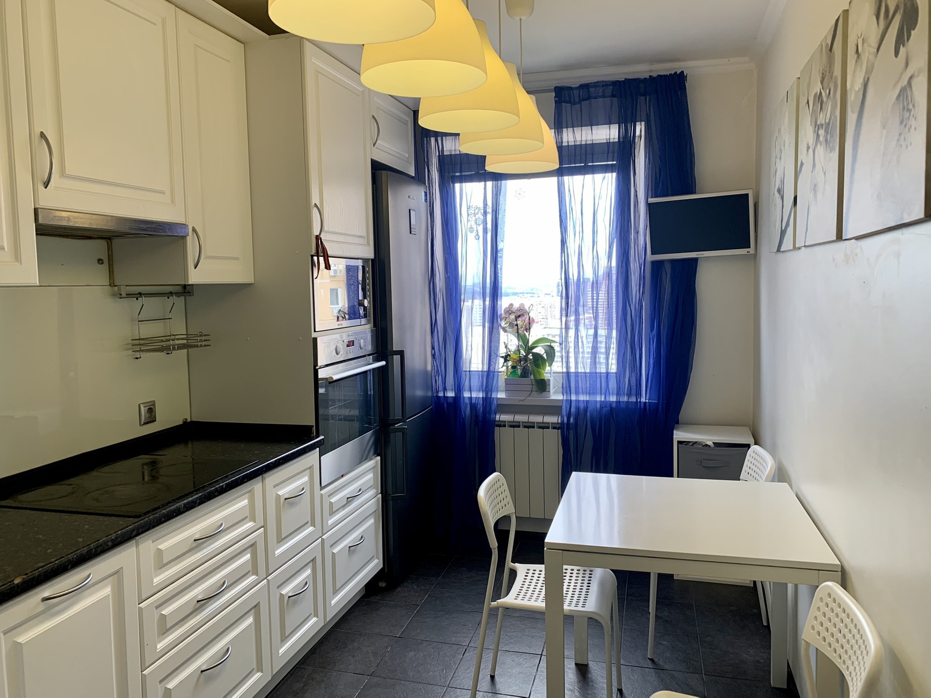 Квартира расположена на высоком этаже, что снижает загазованность воздуха Москвы, а также открывает панорамные виды на город.