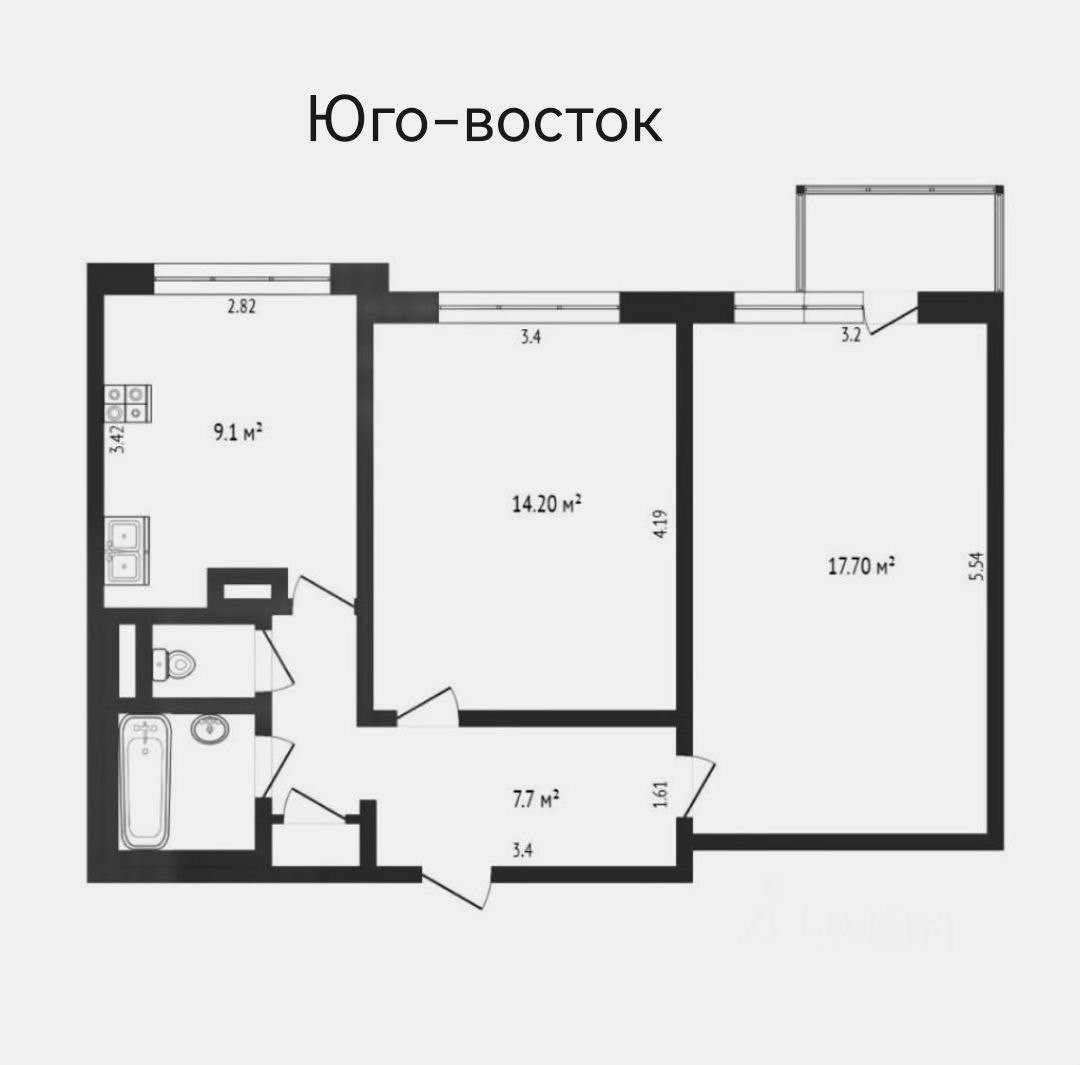 Жилая площадь 42.2 м2