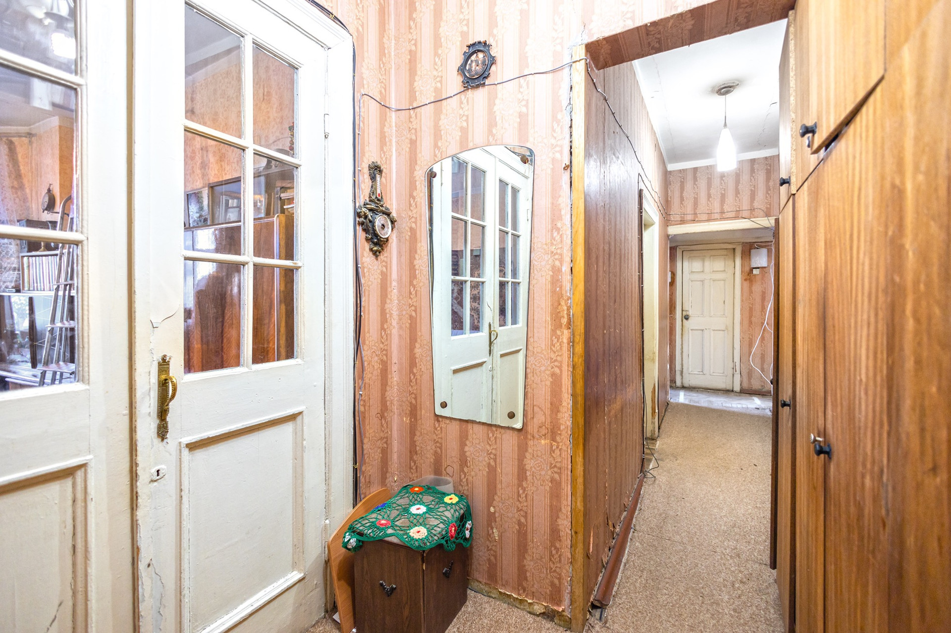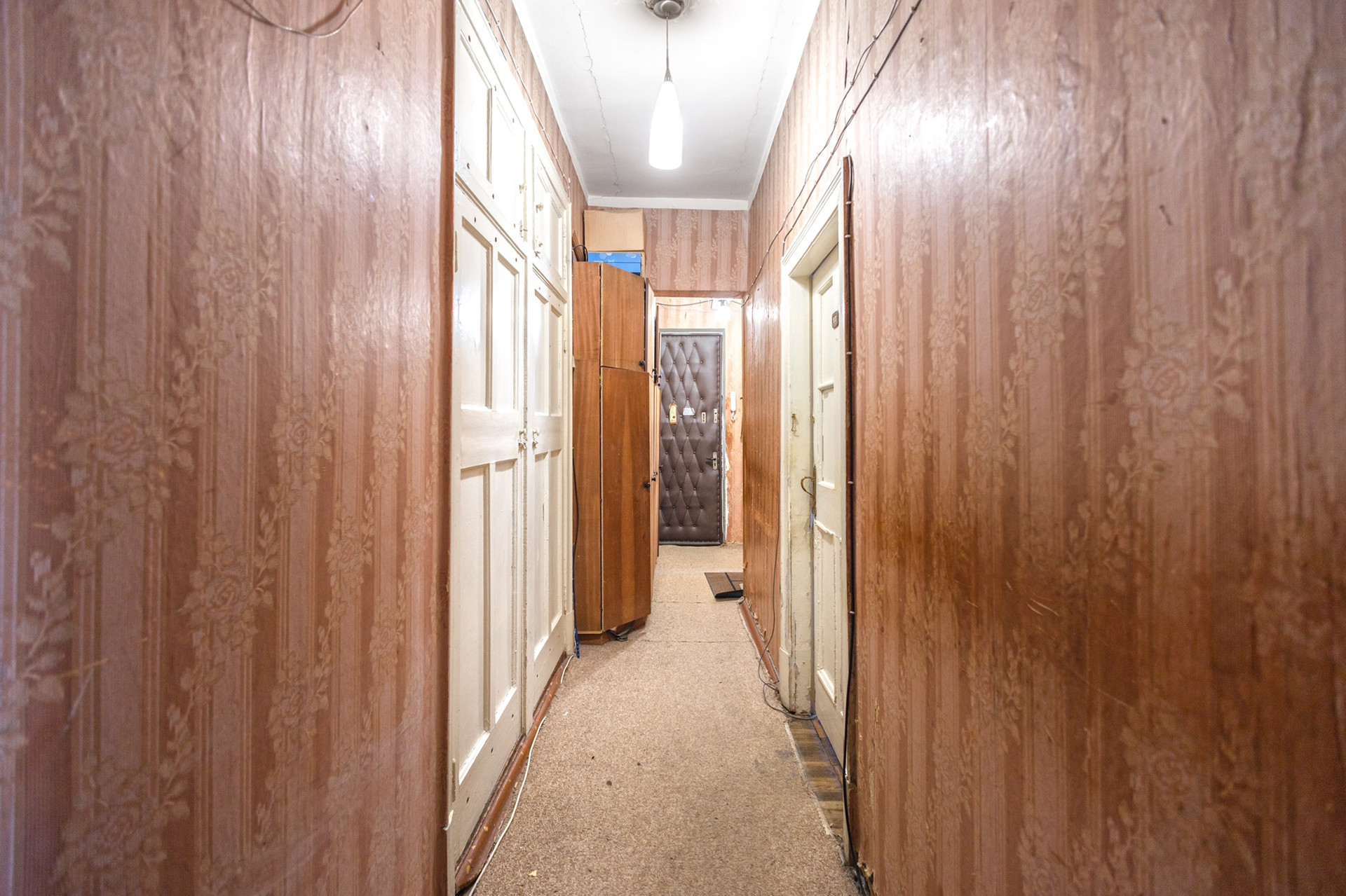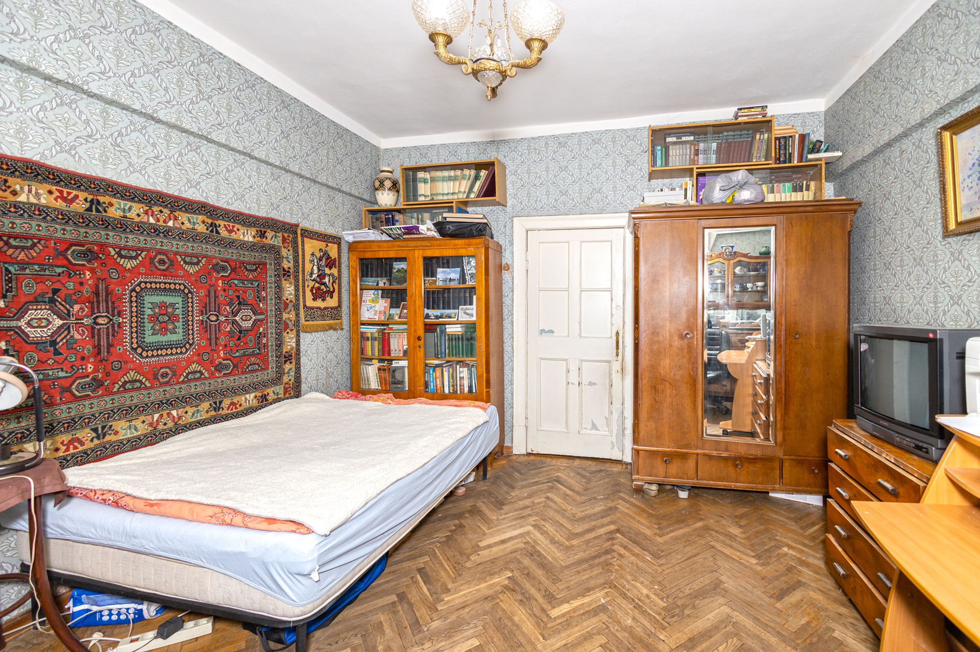 Квартира требует капитального ремонта. Три изолированные комнаты 18/18,7/15,2 м2, большая комната с эркером. Кухня 9,7 м2 с выходом на балкон. С/у раздельный. Просторный коридор. Перепланировок не было.