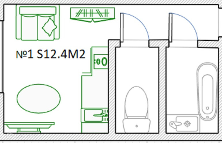 Общая площадь 12.4 м2