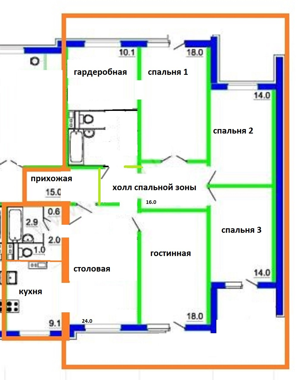 Жилая площадь 98 м2