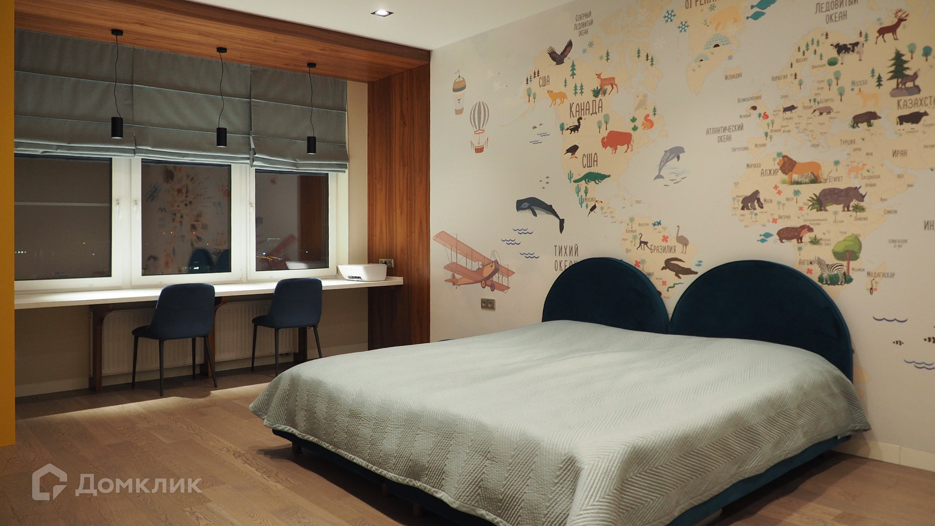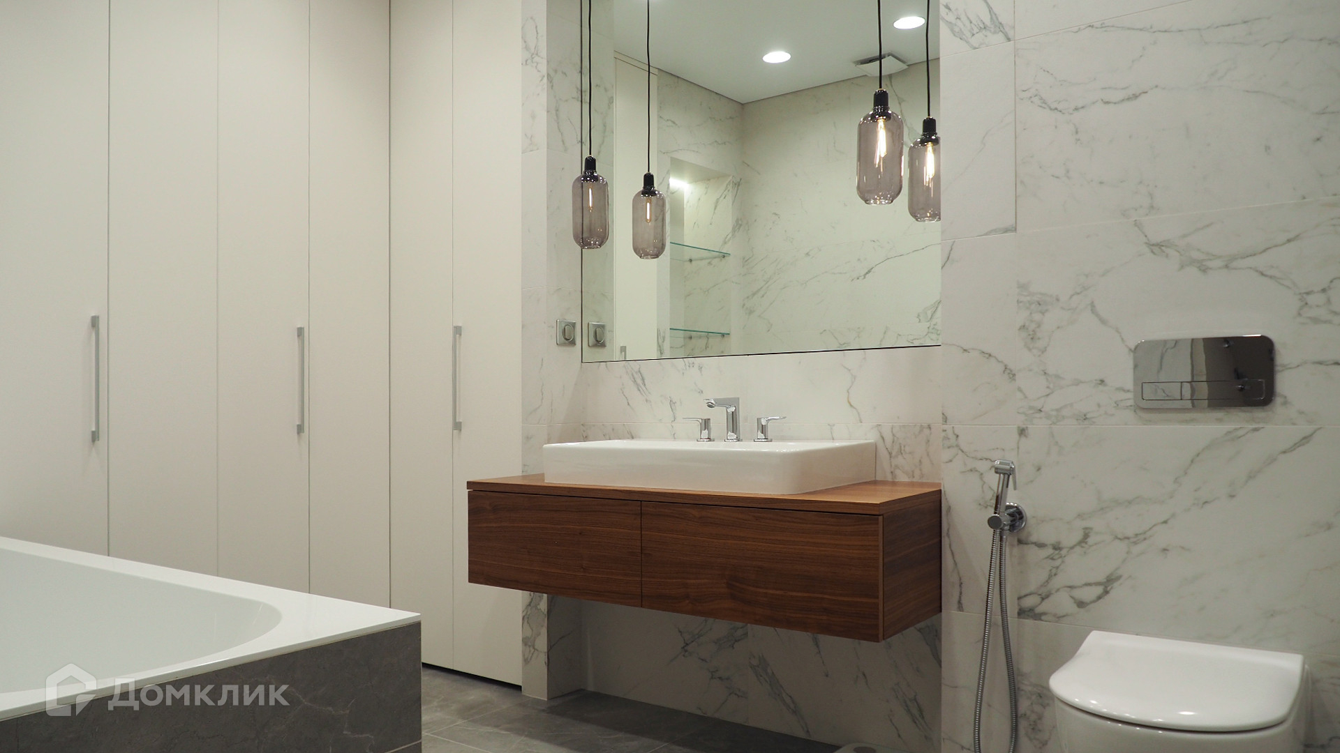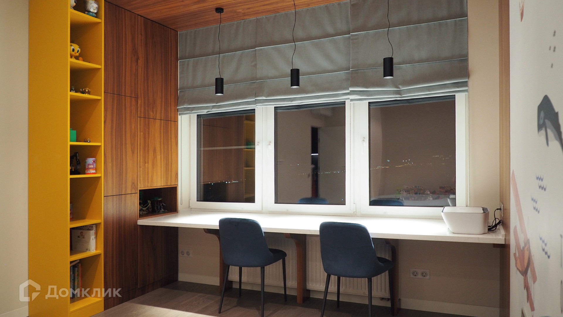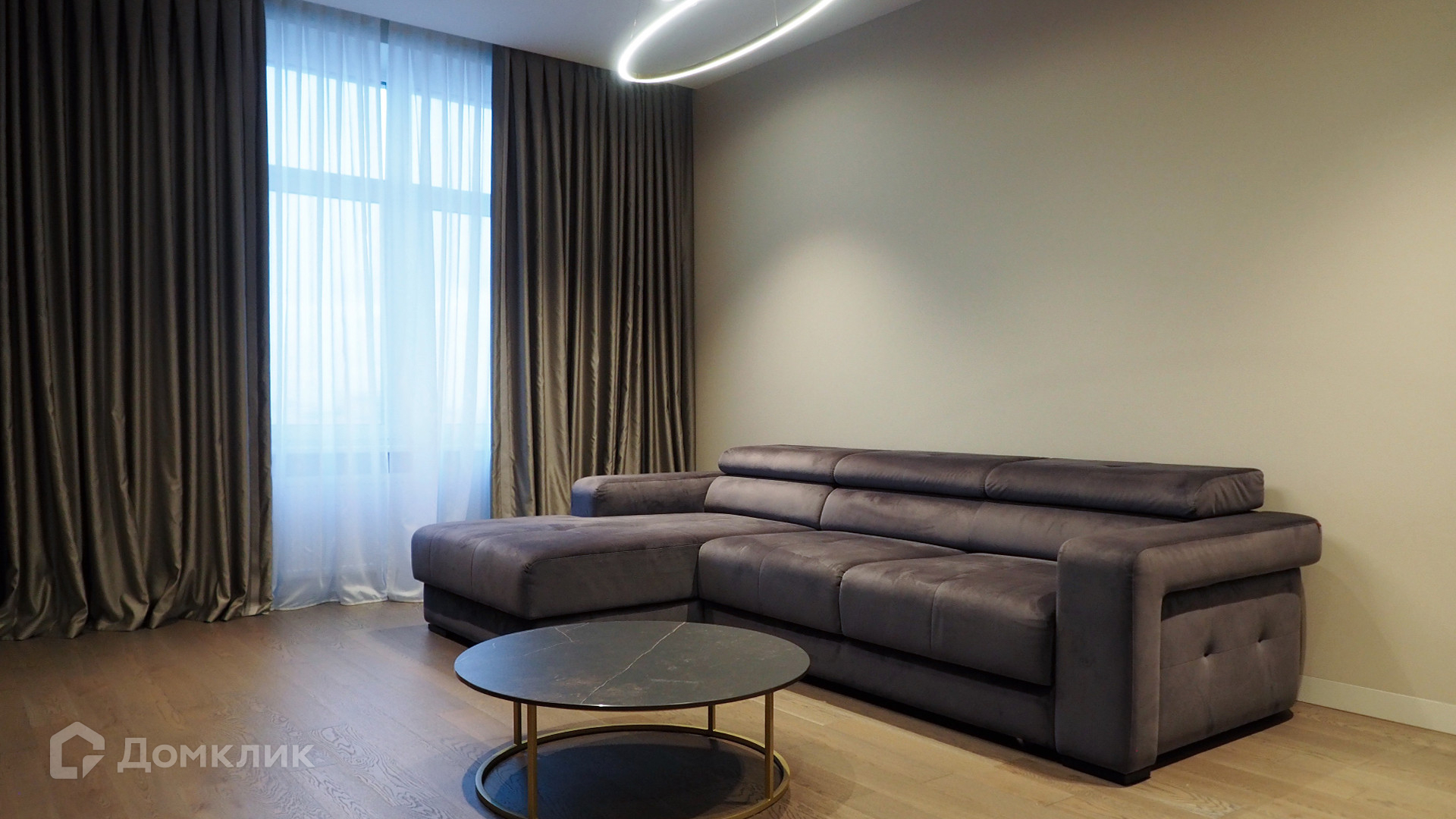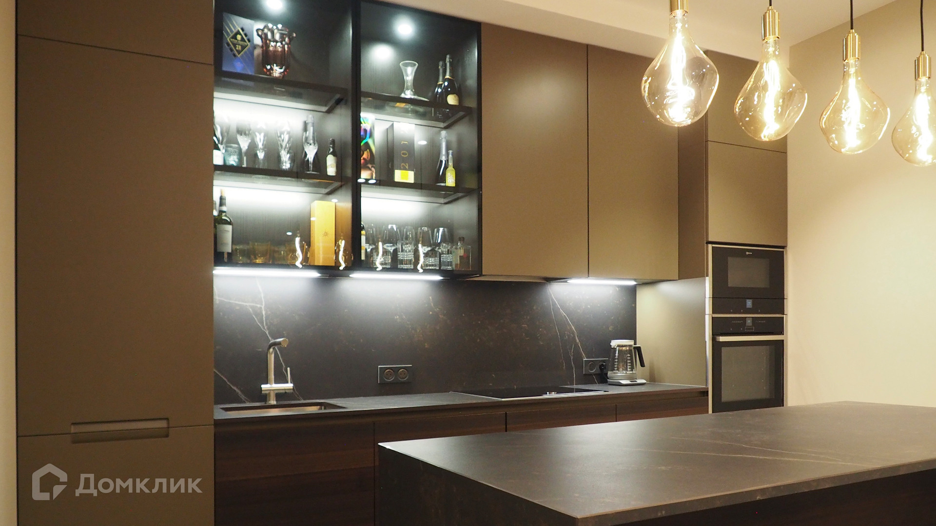 Планировка: просторная кухня-гостиная с обеденной зоной, две спальни, два совместных санузла. Квартира полностью укомплектована мебелью, кухня с островом оснащена встроенной техникой. Из окон открывается панорамный вид на город.