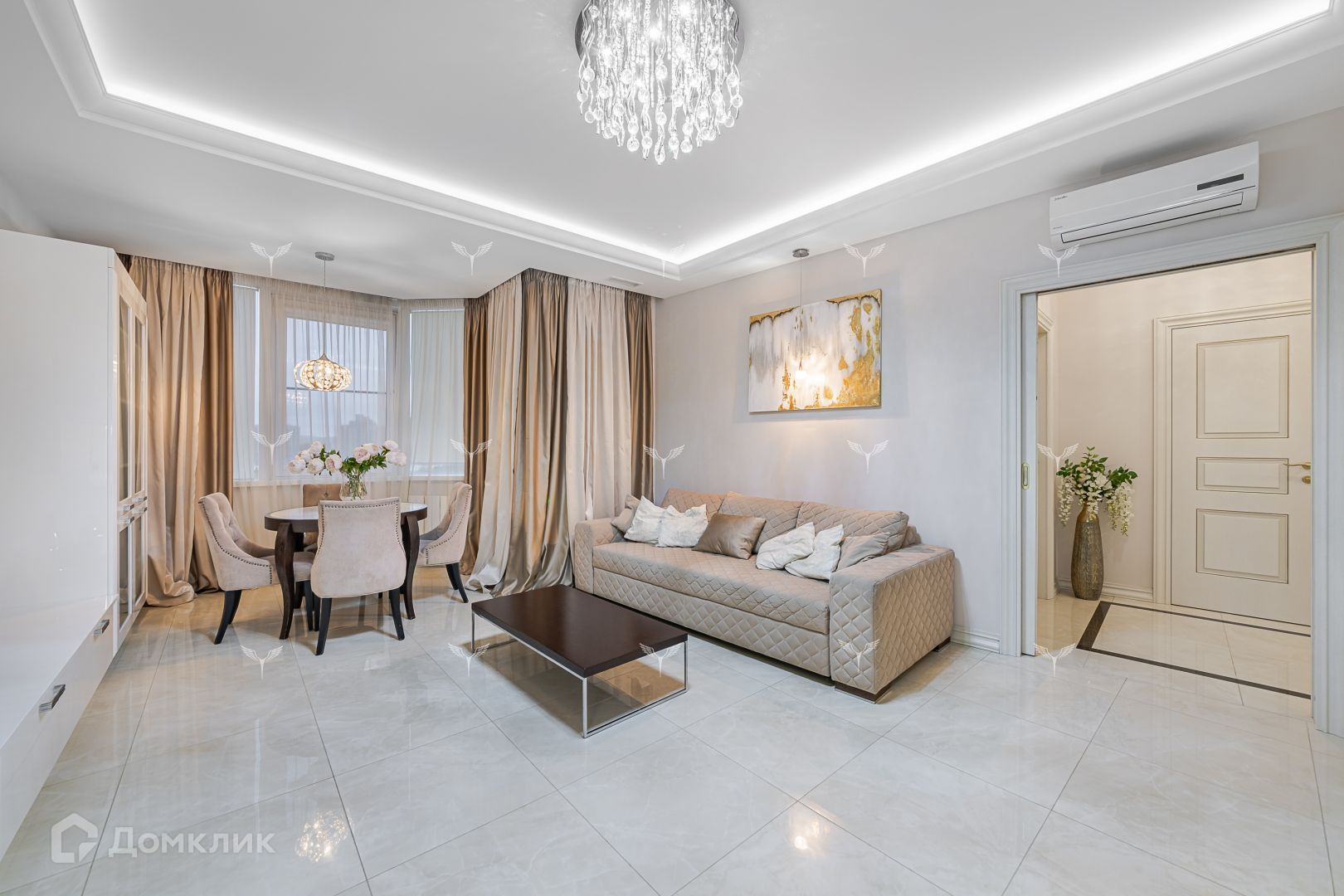 Ремонт в квартире выполнен по авторскому дизайн-проекту. Интерьер выдержан в чертах нейтрального современного стиля, в оформлении преобладают спокойные и элегантные цветовые гаммы. Использованы дорогостоящие отделочные материалы , а также санузлы и ванные комнаты в квартире оснащены оборудованием элитных брендов. Установлена система кондиционирования воздуха, приточной-вытяжная вентиляция. В подземном паркинге жилого комплекса за квартирой закреплено два машиноместа.