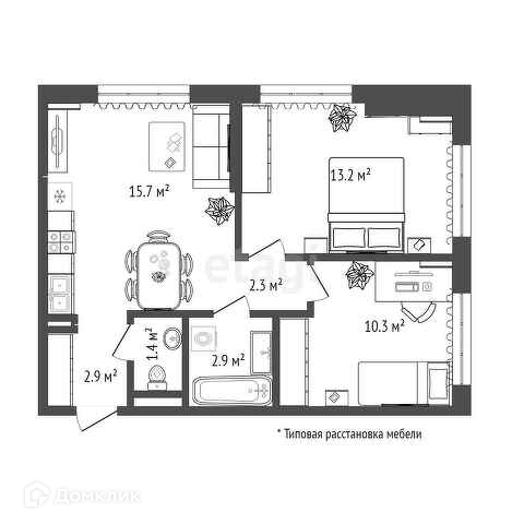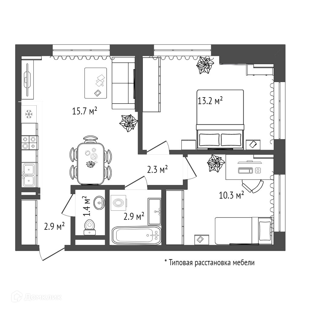 Общая площадь 48.9 м2