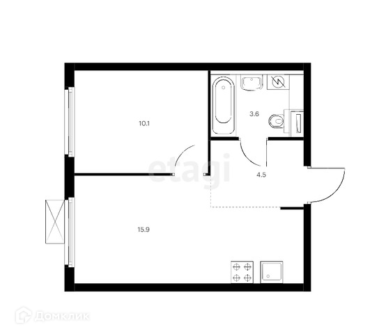 Общая площадь 34.1 м2