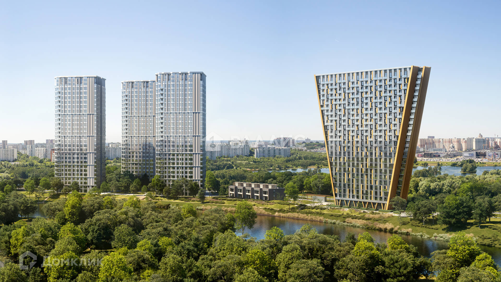 Жилой комплекс расположен на первой береговой линии в окружении парковых зон.