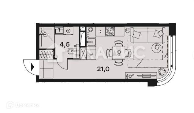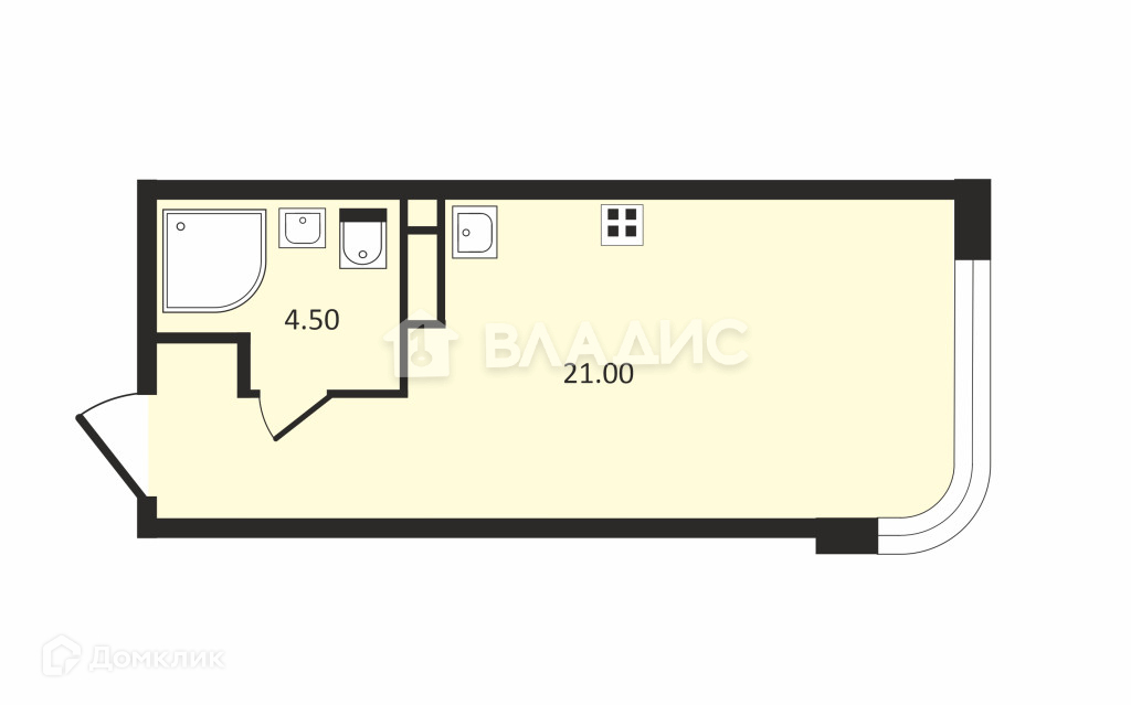 Общая площадь 25.7 м2