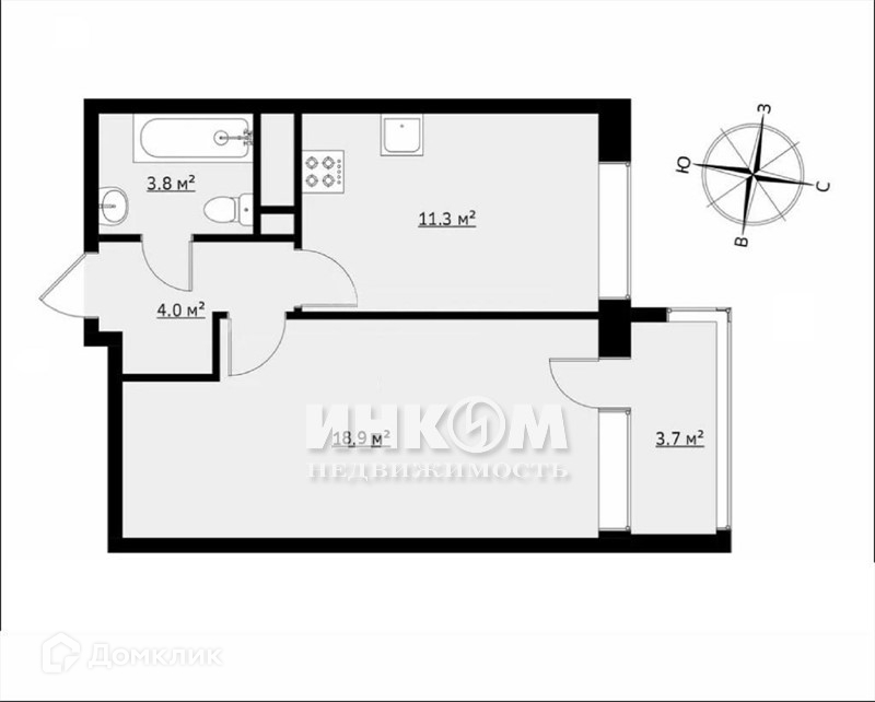 Общая площадь 38.8 м2