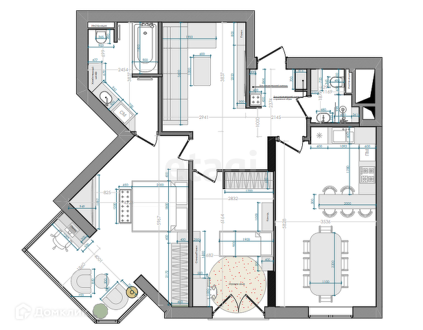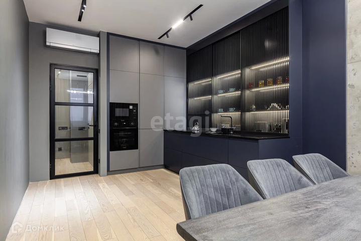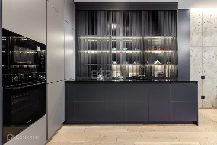 Кухонный гарнитур сделан по индивидуальному заказу. Кухня оснащена: встроенным духовым шкафом, СВЧ-печью, холодильником, фильтром для воды и посудомоечной машиной.