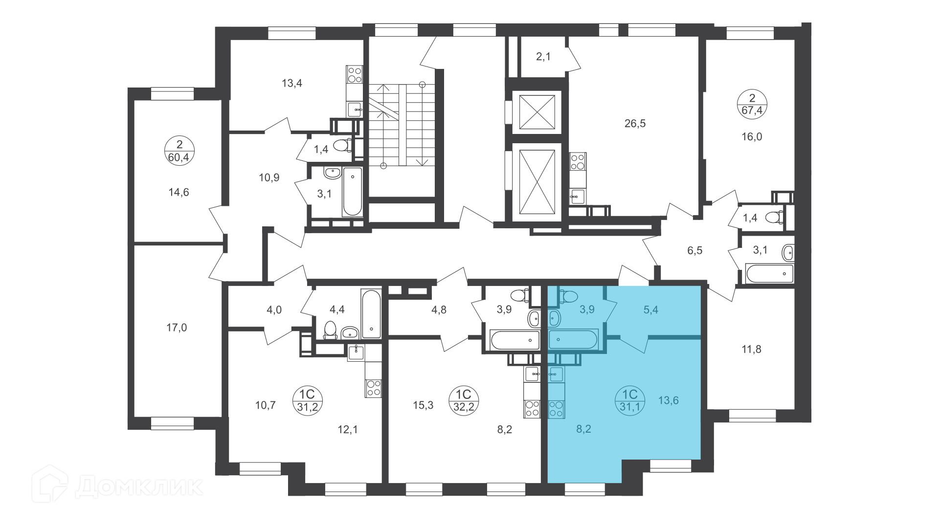 Общая площадь 30.7 м2