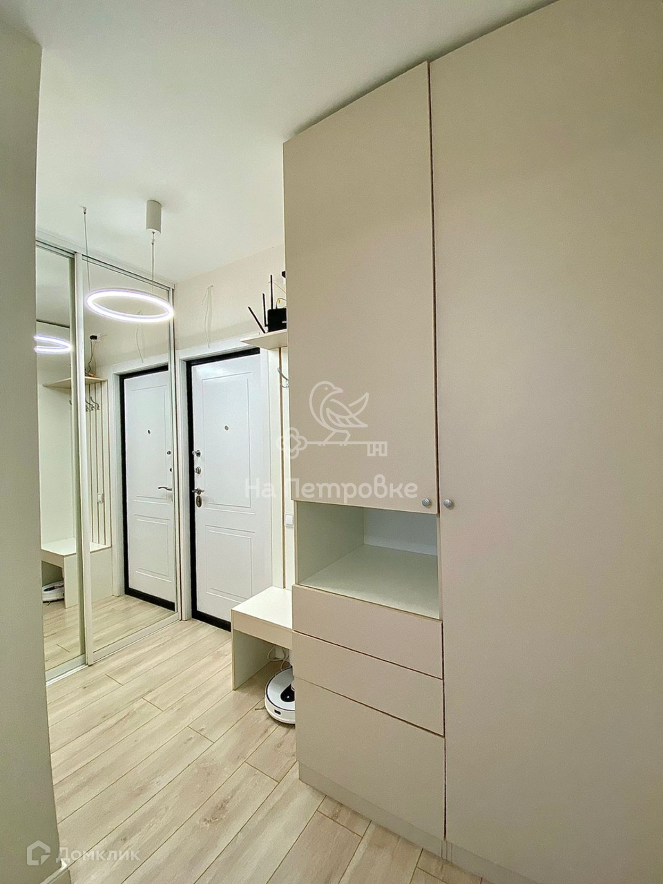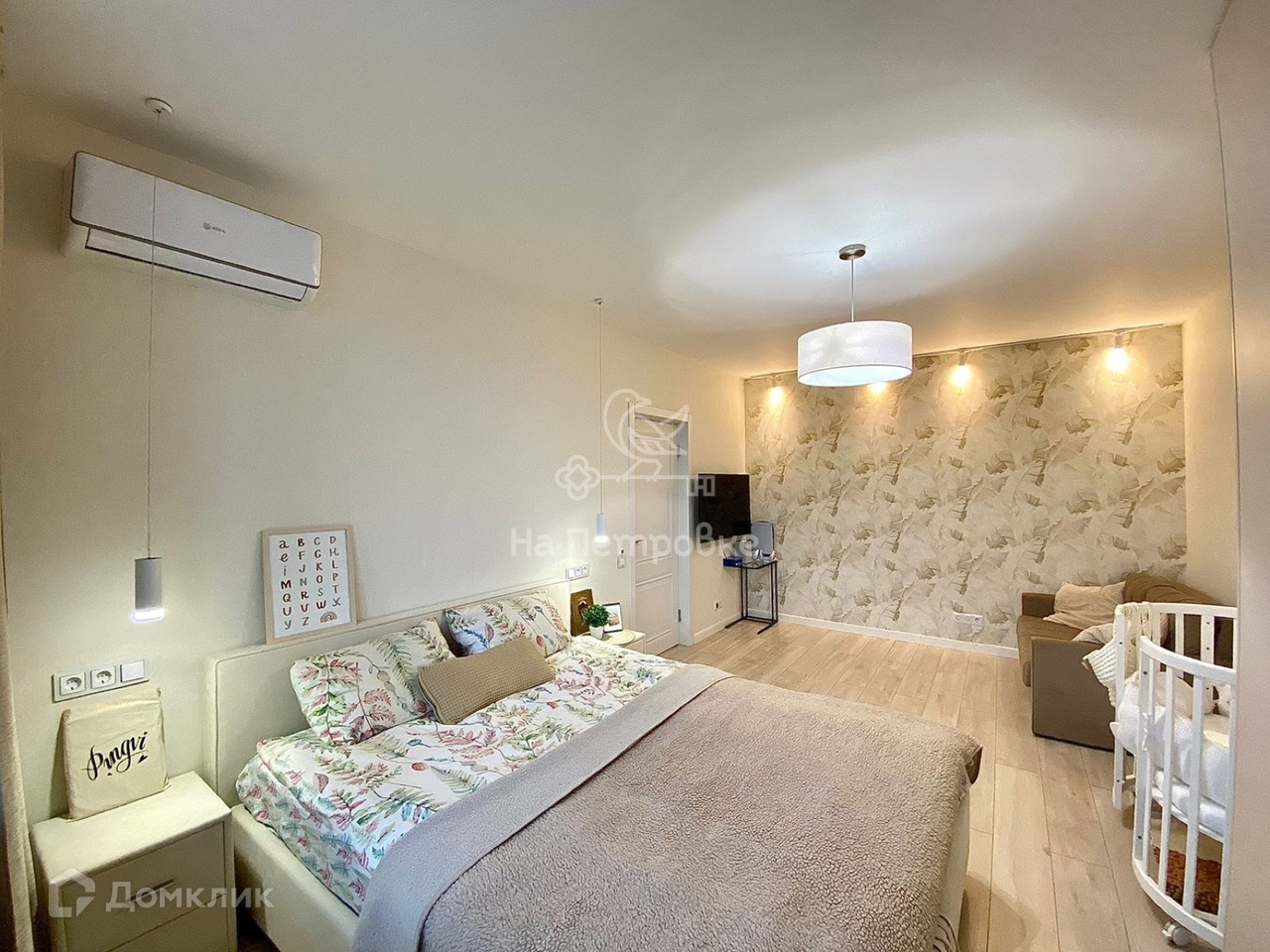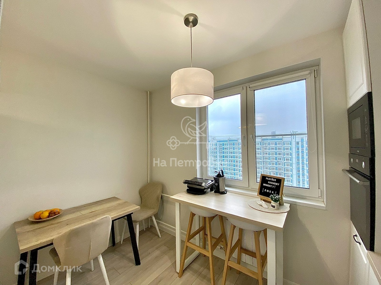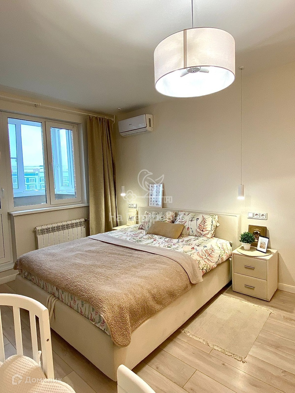 Окна квартиры выходят в тихий двор, из окон открывается вид с высоты птичьего полета на уютный двор с деревьями, двумя детскими и спортивной площадками. Квартира светлая, оборудована кондиционером и другой необходимой для комфортной жизни мебелью и техникой. Хорошо продуманное освещение создает грамотное зонирование и позволяет делать разные акценты в зависимости от ситуации. Выход на застекленную утепленную лоджию из комнаты. Кухня и коридор просторные, вместительные шкафы делают квартиру очень функциональной и аккуратной.