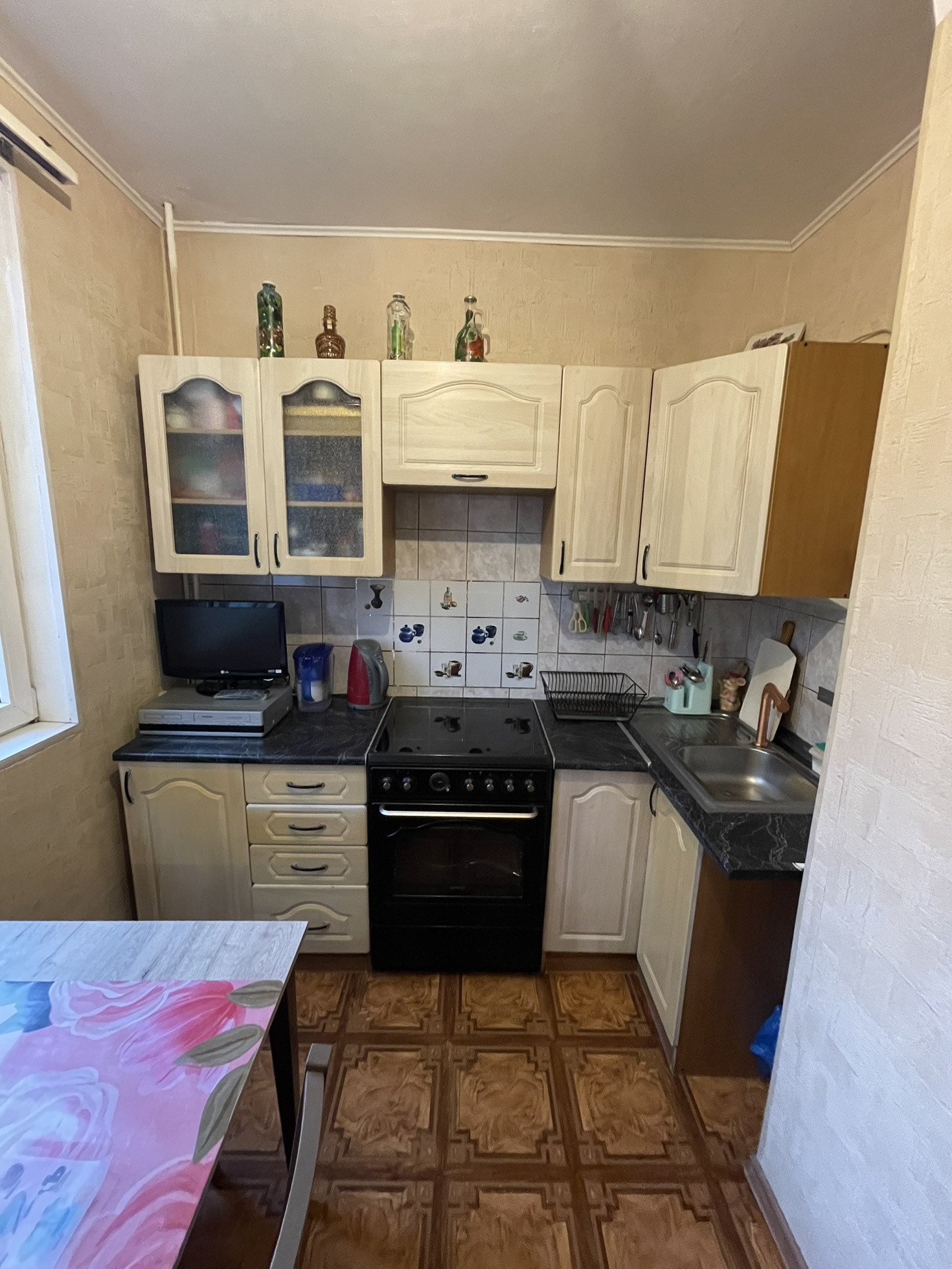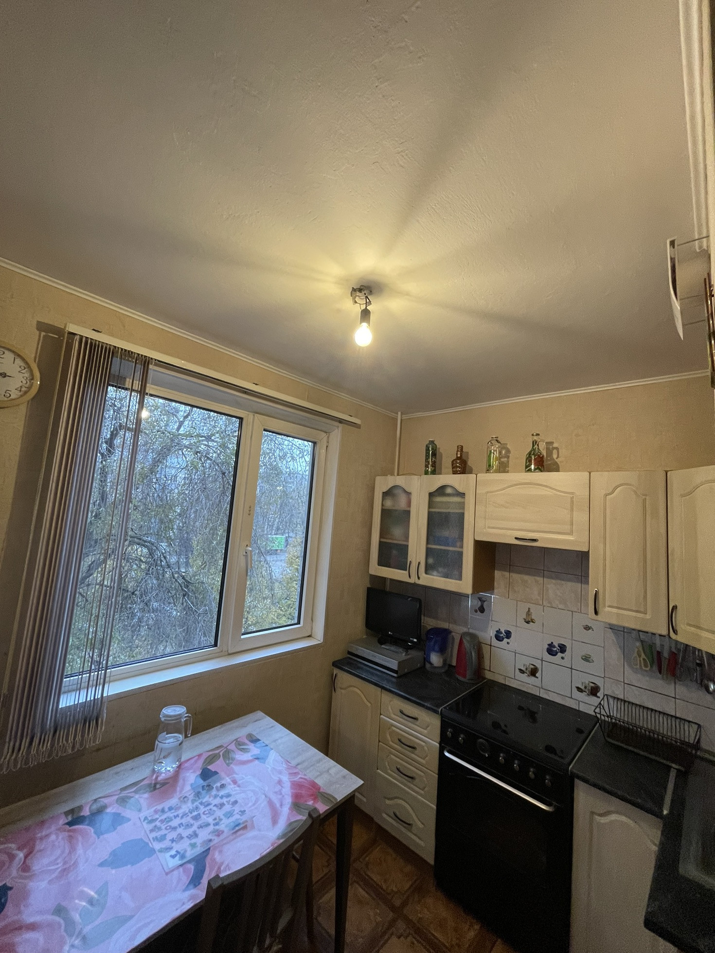 В квартире останется кухонный гарнитур и плита, шкафы в комнате и коридоре.