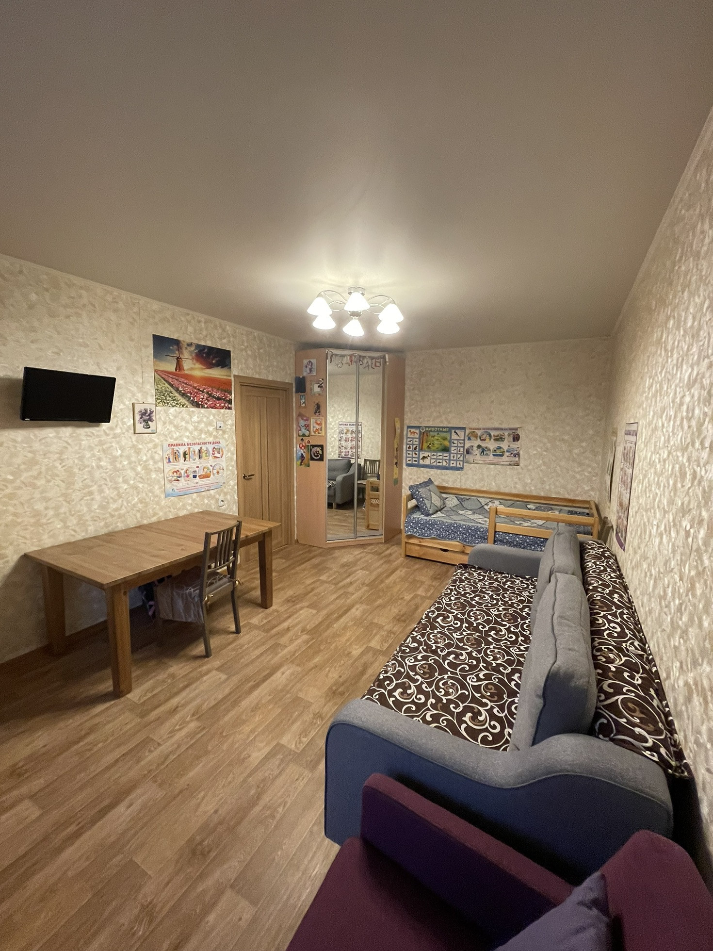 Квартира теплая, окна выходят на солнечную сторону. Расположена далеко от лифтов и мусоропровода.