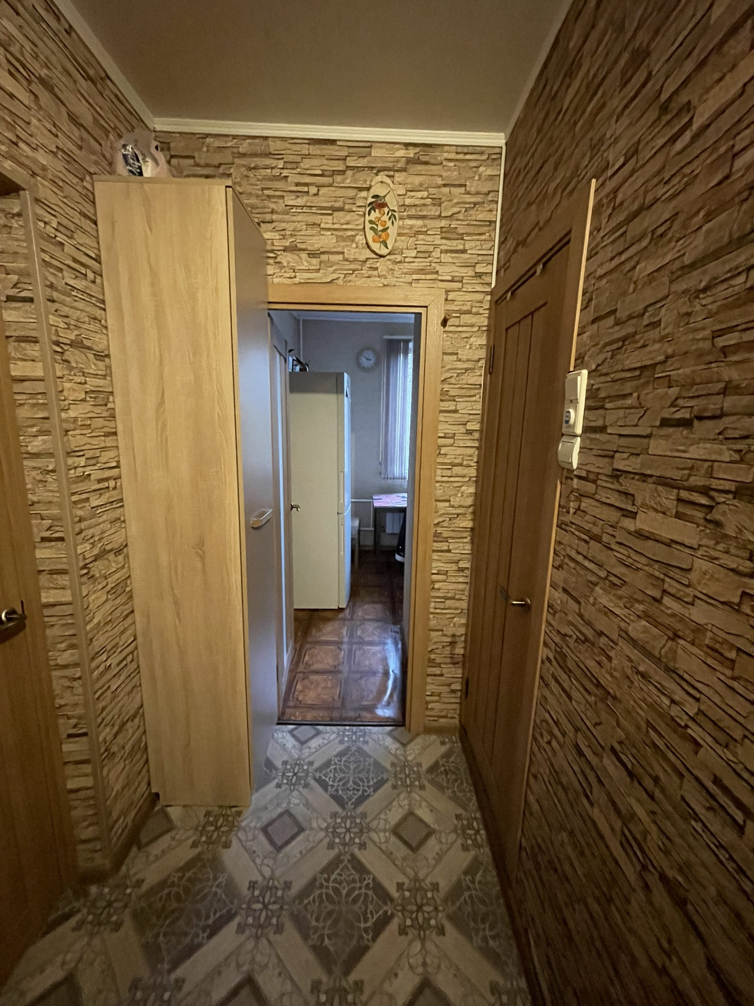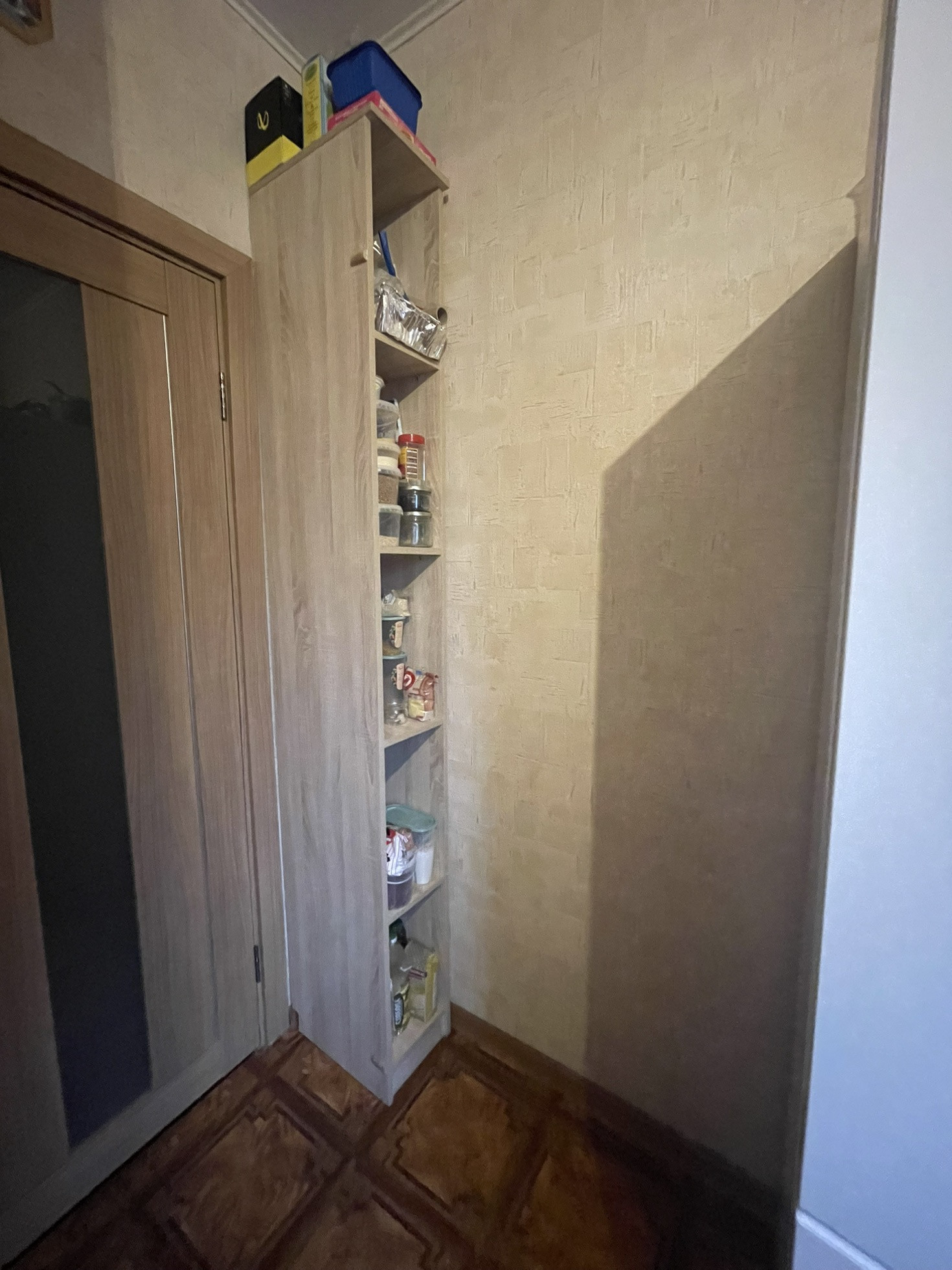 В коридоре встроенный вместительный шкаф под потолок.