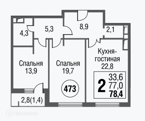 Общая площадь 77.8 м2