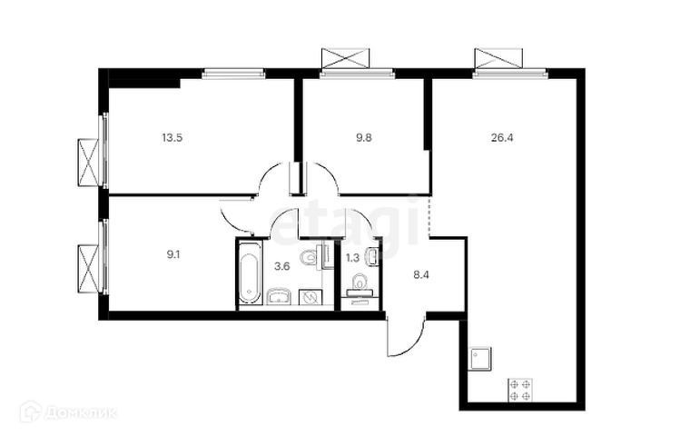 Общая площадь 72 м2