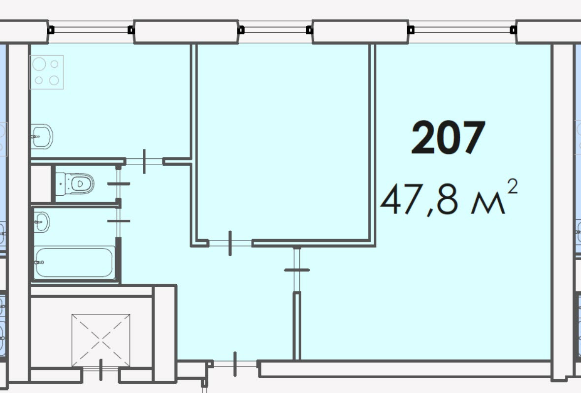 Общая площадь 47.8 м2