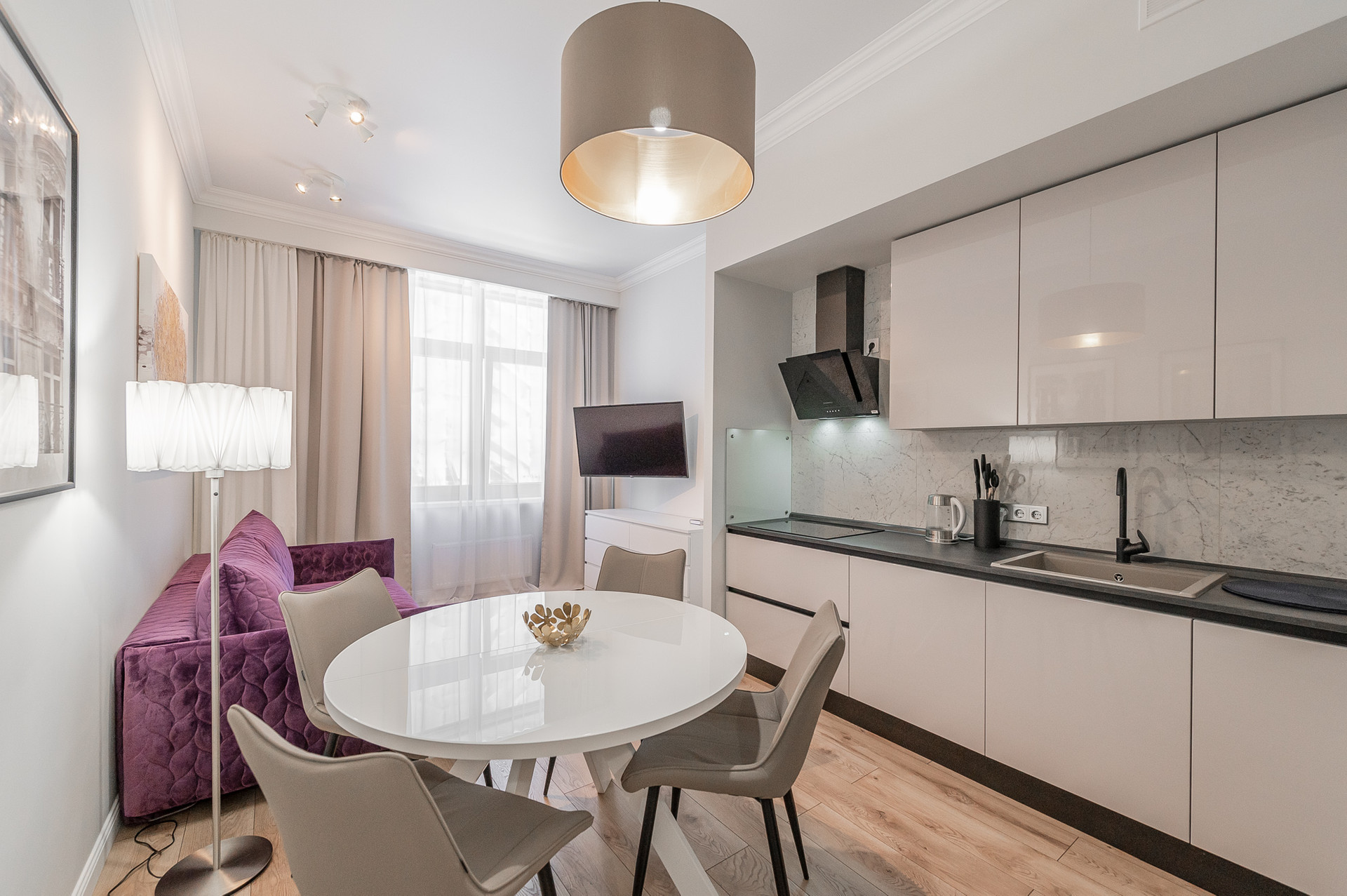 Сделан качественный и очень функциональный ремонт в классическом стиле.