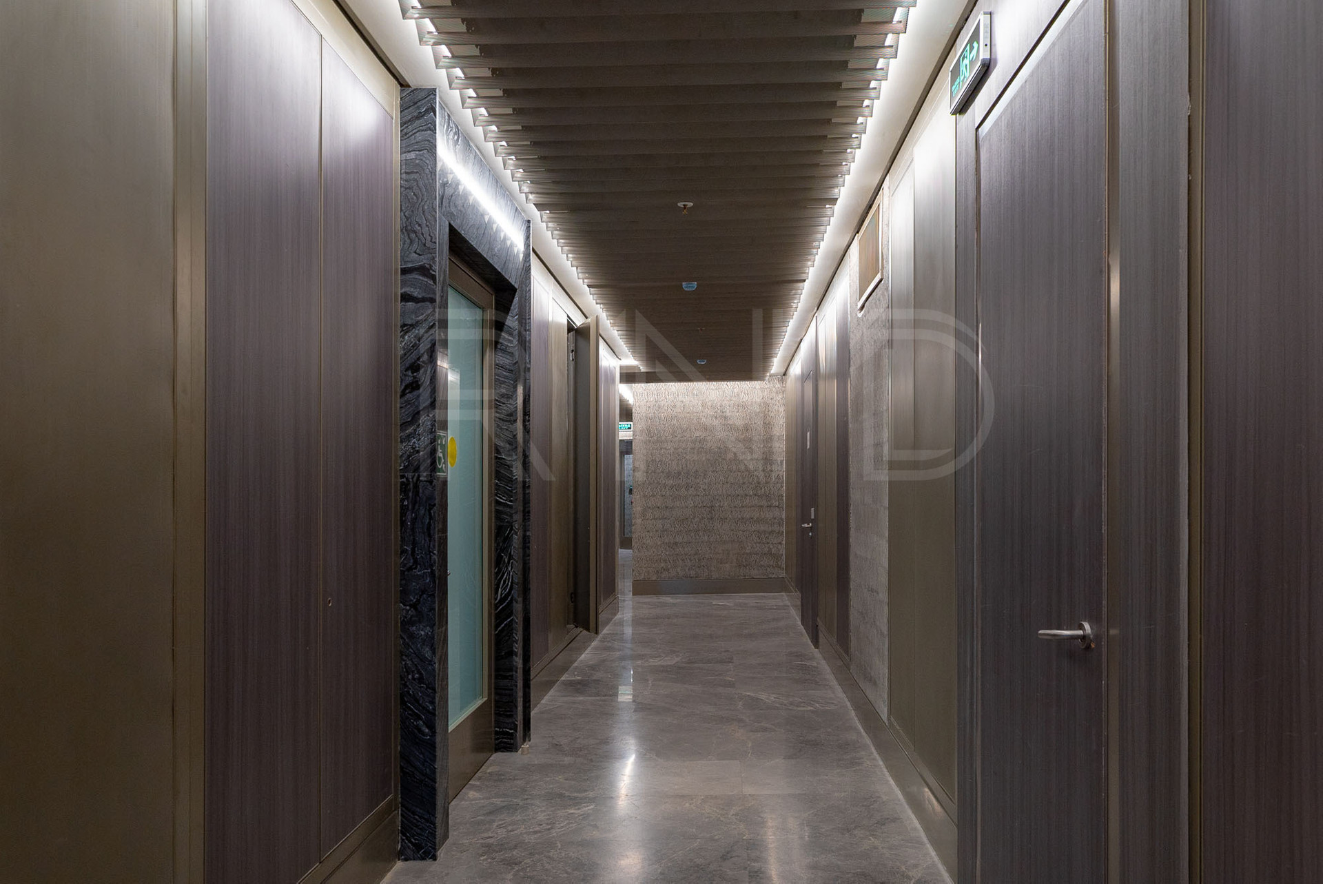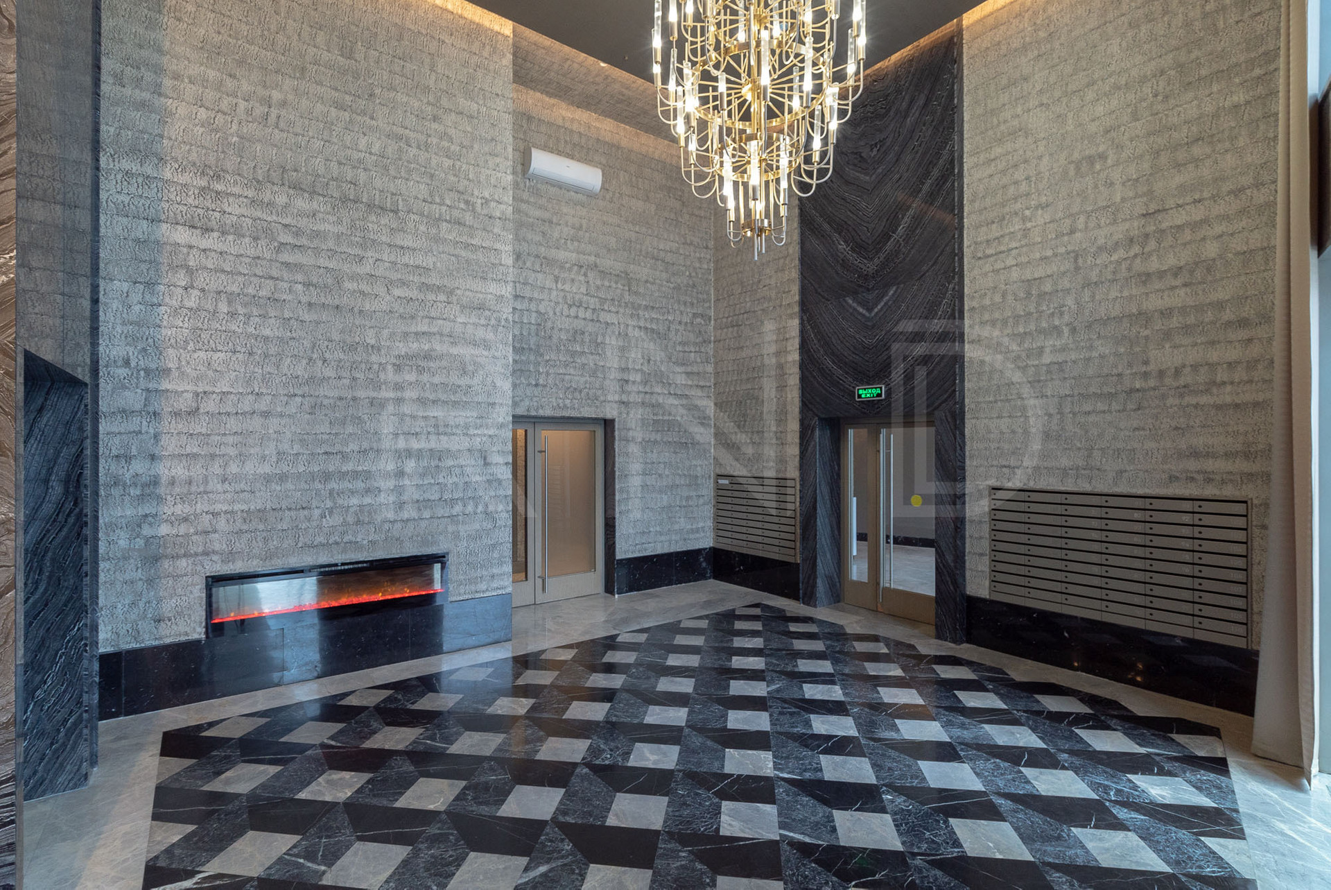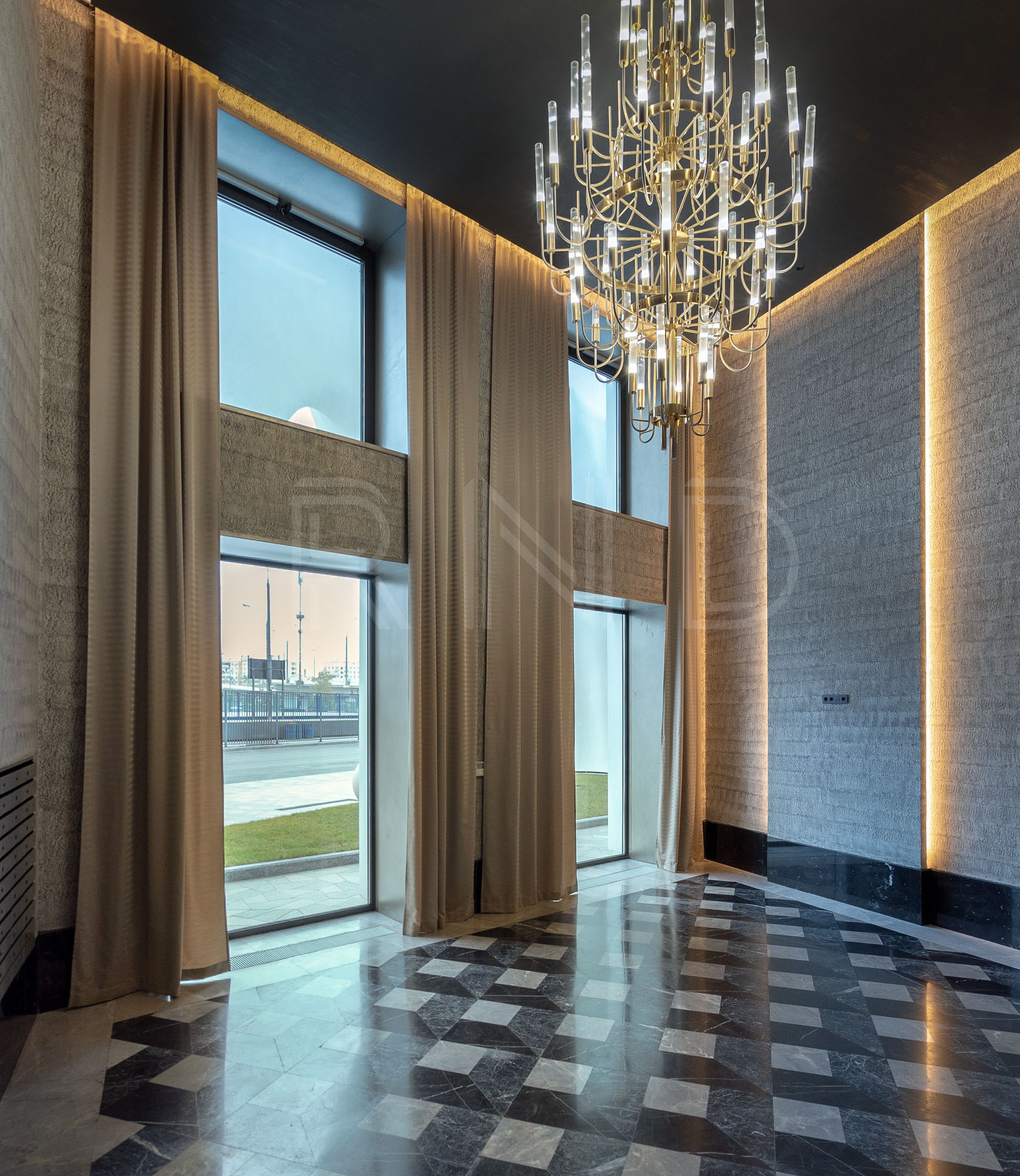 Входная группа  выполнена из натуральных отделочных материалов, интерьеры в стиле  CHANEL.