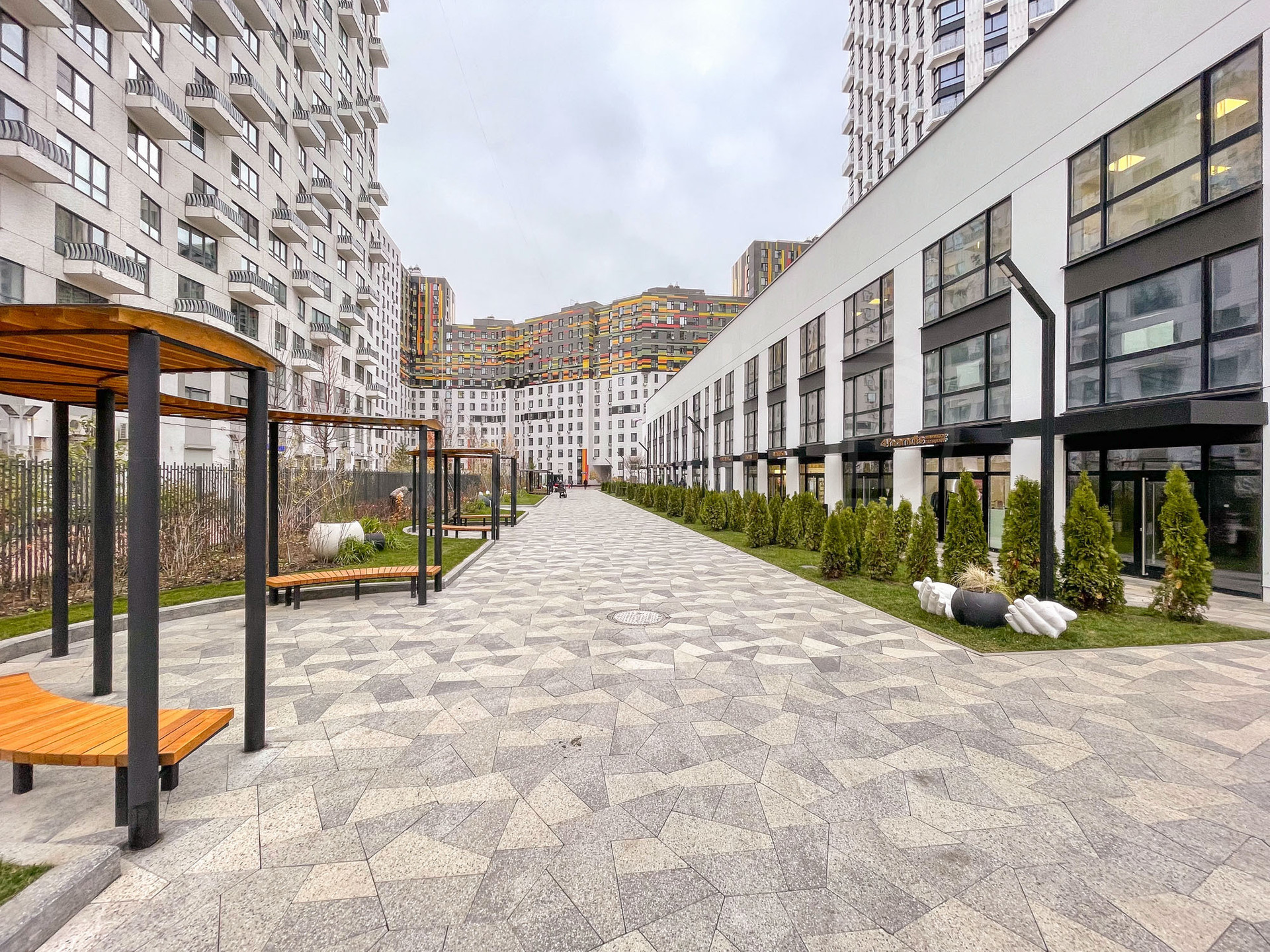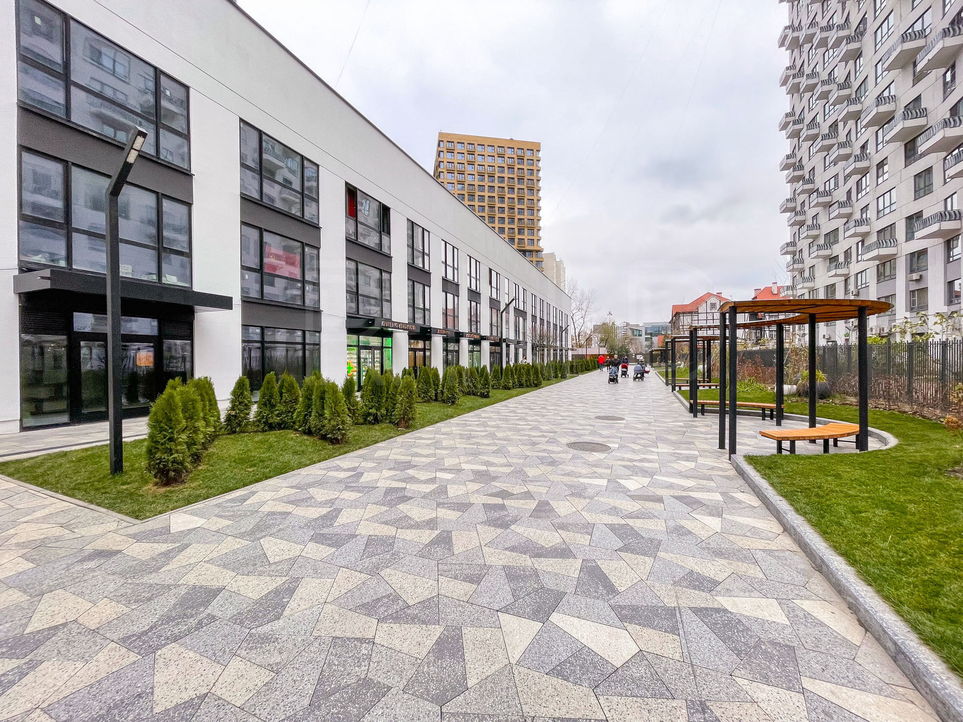В комплексе работают магазины, рестораны и супермаркет Глобус Гурмэ.
