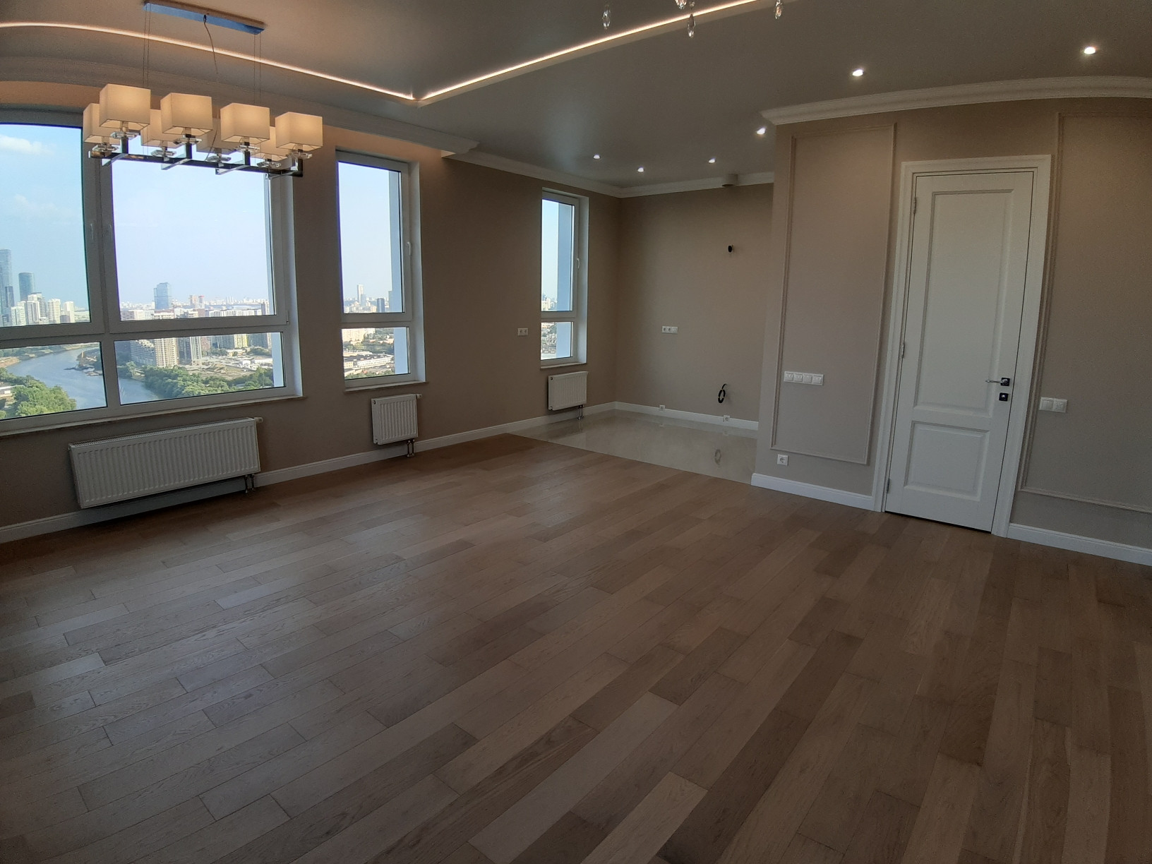 Продаем 4-х комнатную квартиру в ЖК бизнес-класса " Утесов" , с видом на Москва-реку с 30 этажа 31 этажного монолитного дома. В квартире выполнен дизайнерский ремонт в стиле современной классики. Планировка включает в себя кухню-столовую-гостиную площадью 39 м.кв. и 3 спальни, просторная прихожая, две гардеробные комнаты, два сан. узла. Отделка высококачественными материалами, на полу инженерная доска(дуб)  и керамогранит с подогревом, мраморные подоконники, итальянская сантехника, 4 кондиционера+ приточная вентиляция, люстры и освещение, въезд через КПП, охрана в подъезде. Квартира в собственности, свободная продажа, полная цена в договоре, быстрый выход на сделку.