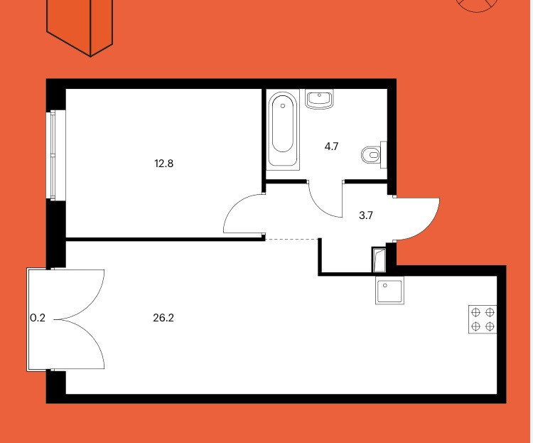 Общая площадь 47.6 м2