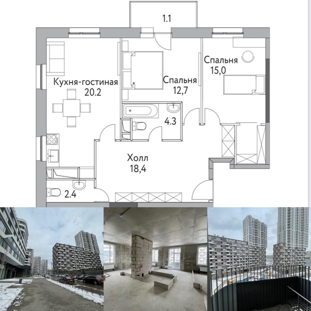 2-комнатная квартира, 72.6 м2, этаж 6 / 28, на продажу в Москве, проезд Невельского, 1к1