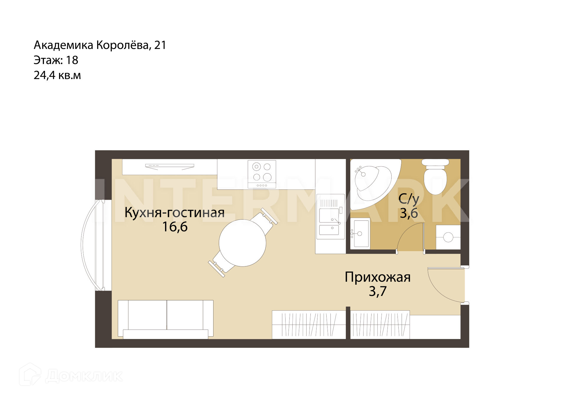 Общая площадь 24.4 м2