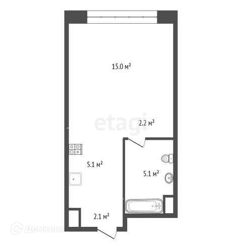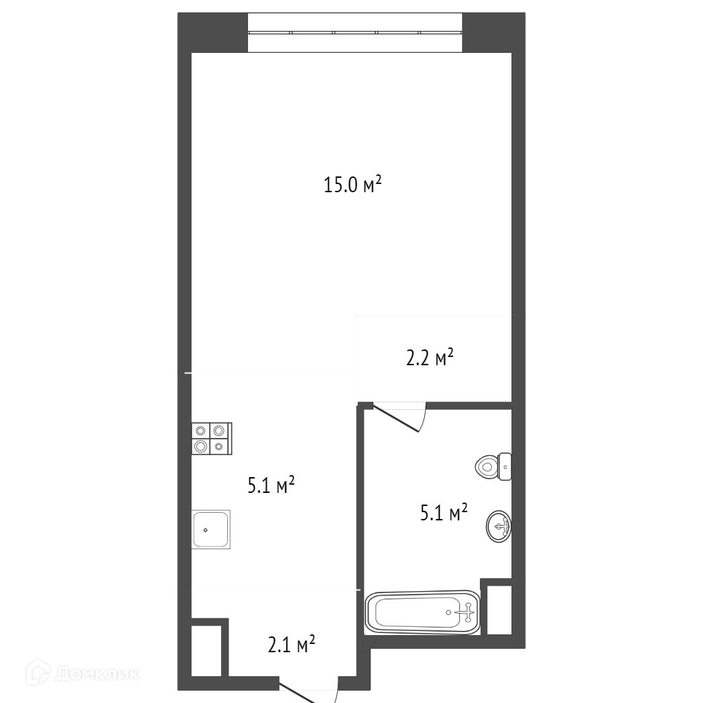 Общая площадь 29.5 м2